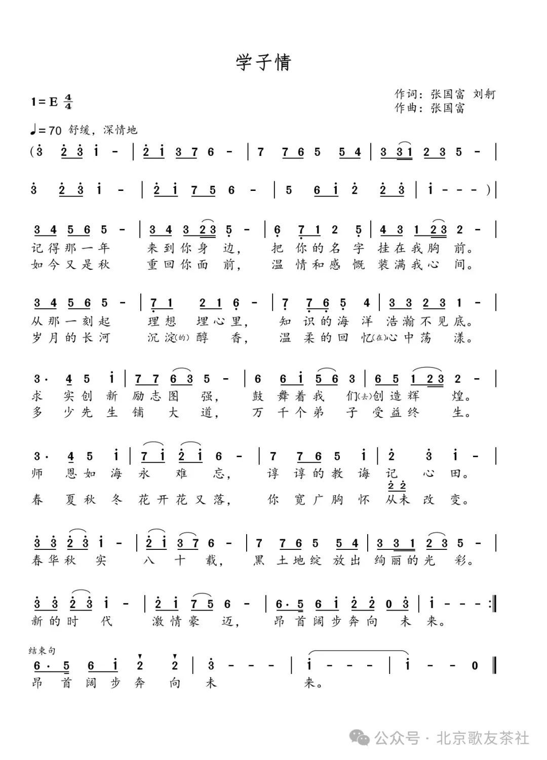 母校恩情深似海,学子情真意切长;多少先生铺大道,万千个弟子受益终生。2026年吉林大学将迎来建校80周年。为有效增进全球131万校友与母校的情谊,展现吉大人拓路踏歌,勇担使命的精神风貌,吉林大学校友会将举办“吉林大学全球校友歌唱大赛”。以吉大往届毕业生中声乐爱好者为骨干创办的北京歌友茶社有幸成为本次大赛的承办单位。为表达对母校的感恩之情,同时为歌唱大赛点燃激情的火花,“茶社”专门为大赛制作了主题歌《学子情》。词曲作者及演唱者均为北京歌友茶社成员,其中5位是吉大校友,8人有幸于2017年回母校参加了吉大71周年校庆专场音乐会。