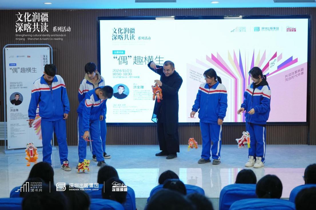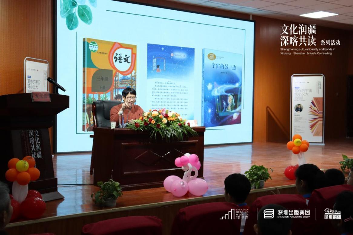 活动特邀国防大学教授金一南少将、中国儿童文学最高奖获得者陈诗哥、非遗传承人洪金雕、中国好书奖得主吴钩、国家一级作家秦锦屏以及科普作家严莹走进喀什,深入推进文化润疆向纵深发展。同时,持续拓展新时代文化润疆的实践路径,向红其拉甫出入境边检站及喀什百姓书房捐赠图书超12万码洋,开展红其拉甫边检站图书捐赠仪式,深圳出版集团代表协助边检站数字书房工作人员整理摆放书籍,营造浓厚书香氛围,进一步搭建两地文化阅读交流平台,为喀什地区文化高质量发展作出了深圳贡献。