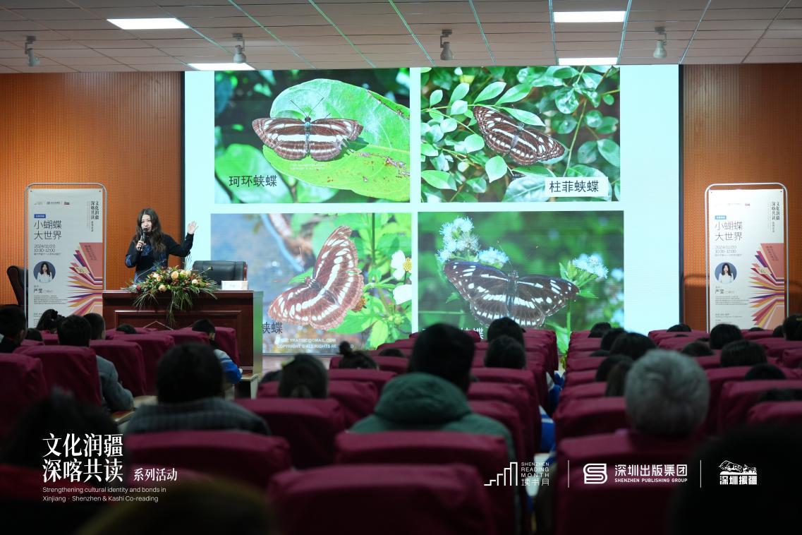 11月19日至20日,知名科普作家严莹老师,走进喀什市百姓书房和喀什市第十一小学,以“小蝴蝶,大世界”为主题,带领喀什师生们探秘蝴蝶世界,解锁生物多样性,畅谈生态保护等重要课题,300名师生线下齐聚,活动辐射线上观众逾千人次。