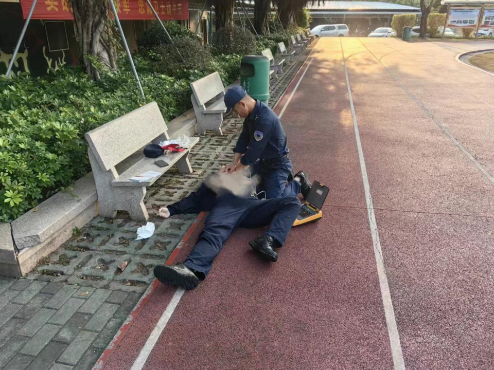 正在林嘉雄实施抢救时,雷泾生和张耀兵也发现了这边的异常情况,立马赶来支援。期间,三人分工协作,雷泾生拨打120急救电话,张耀兵接力实施心肺复苏,林嘉雄迅速跑去操场边的休息室取来AED。