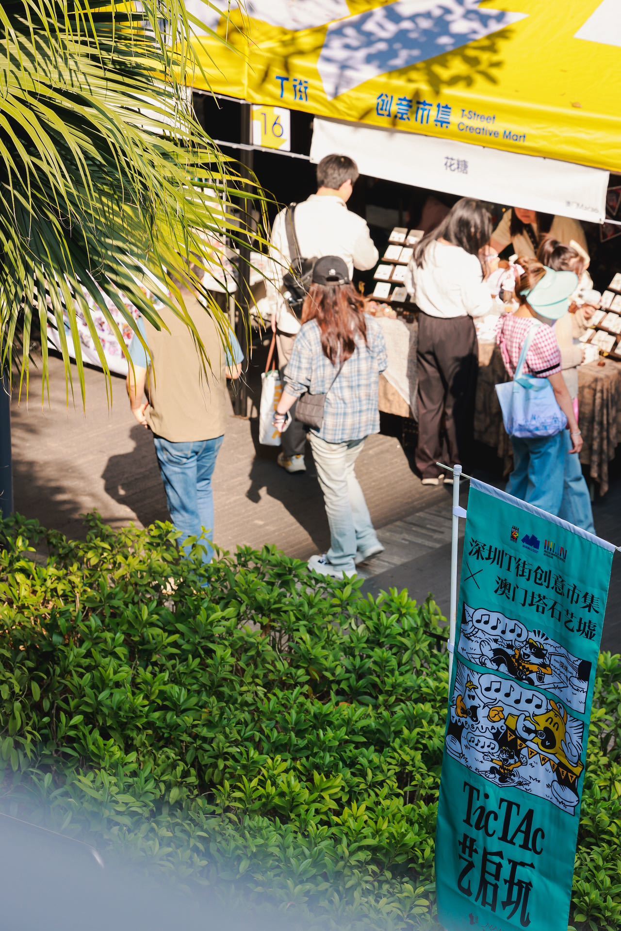 作为致力促进创意文化交流16年的市集品牌,T街创意市集在深圳“创意十二月”期间,以「TicTAc艺启玩」为主题,在12月第一周及第三周周末特别策划两期市集专项活动,其中在12月7日-8日,特别携手澳门塔石艺墟,联动邀请90家主要来自澳门、深圳及周边地区的优质文创品牌,当中来自澳门的文创品牌摊主占到50%。从设计前卫的文创产品到传统特色的人文手作,这些湾区创意人用一件件作品,传递他们对创意生活的无限热爱。市集现场还有由澳门文化局特别打造的限时快闪车装置,展示来自澳门的原创时尚品牌好物,也成为街头亮点,吸引许多年轻消费者驻足。