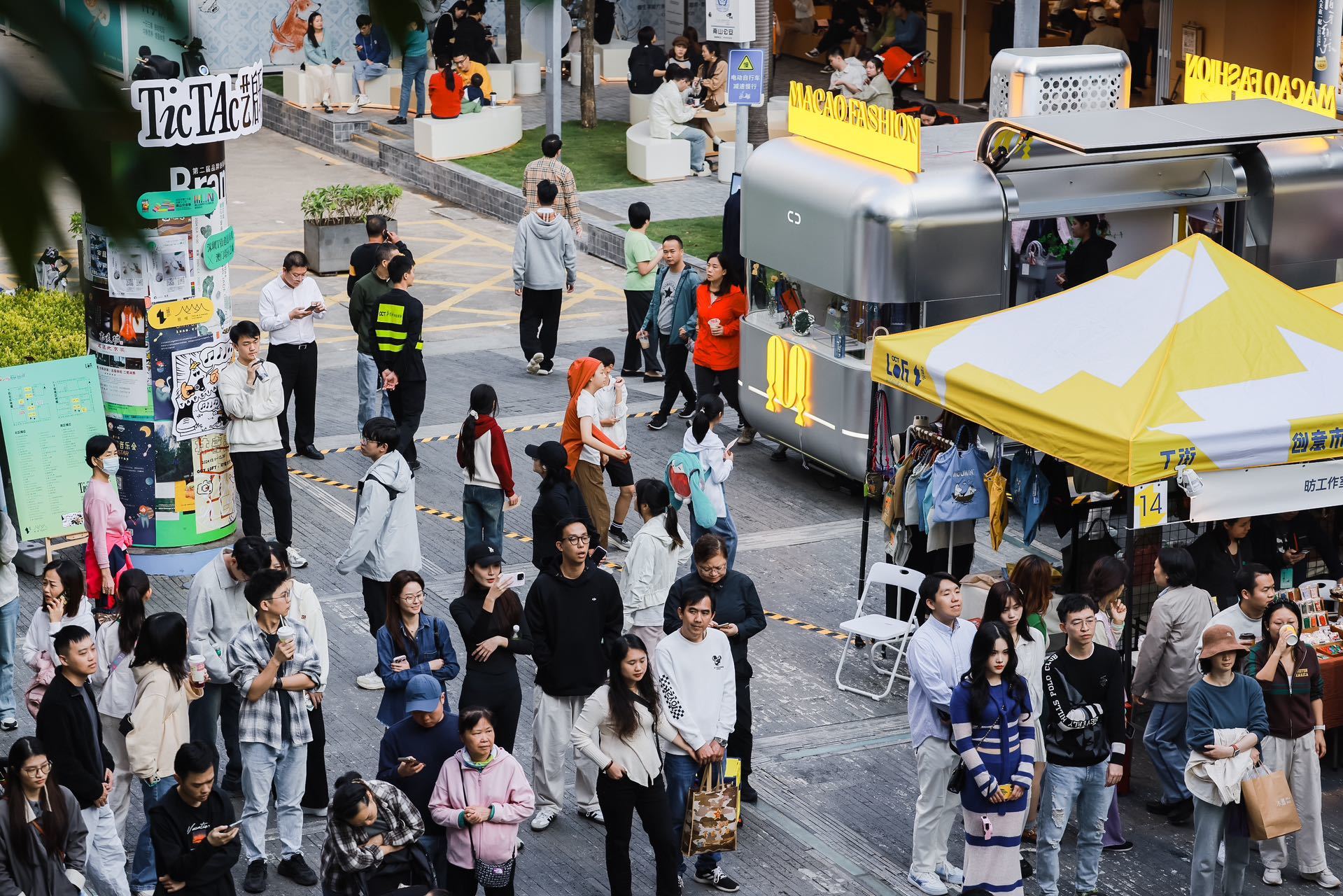来自澳门、深圳及周边城市的文创品牌摊主在现场与市民交流互动