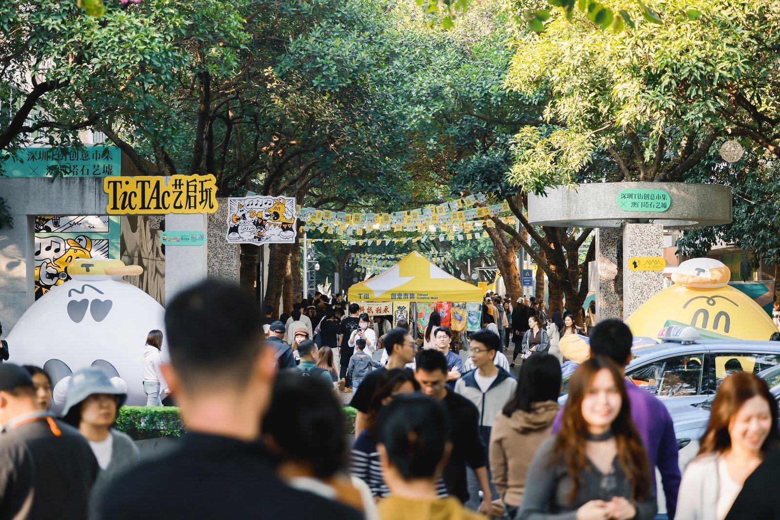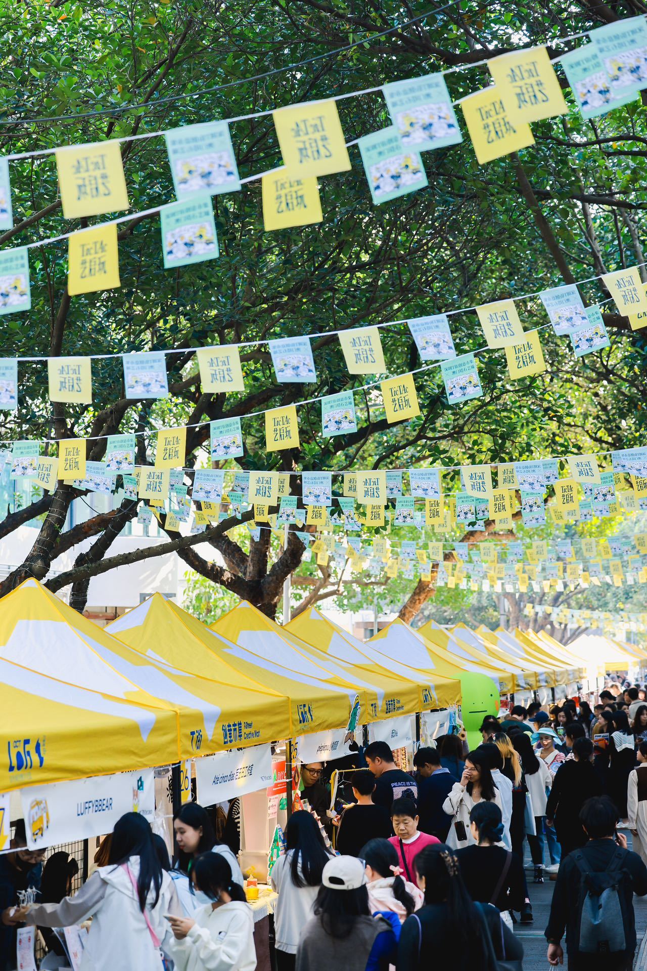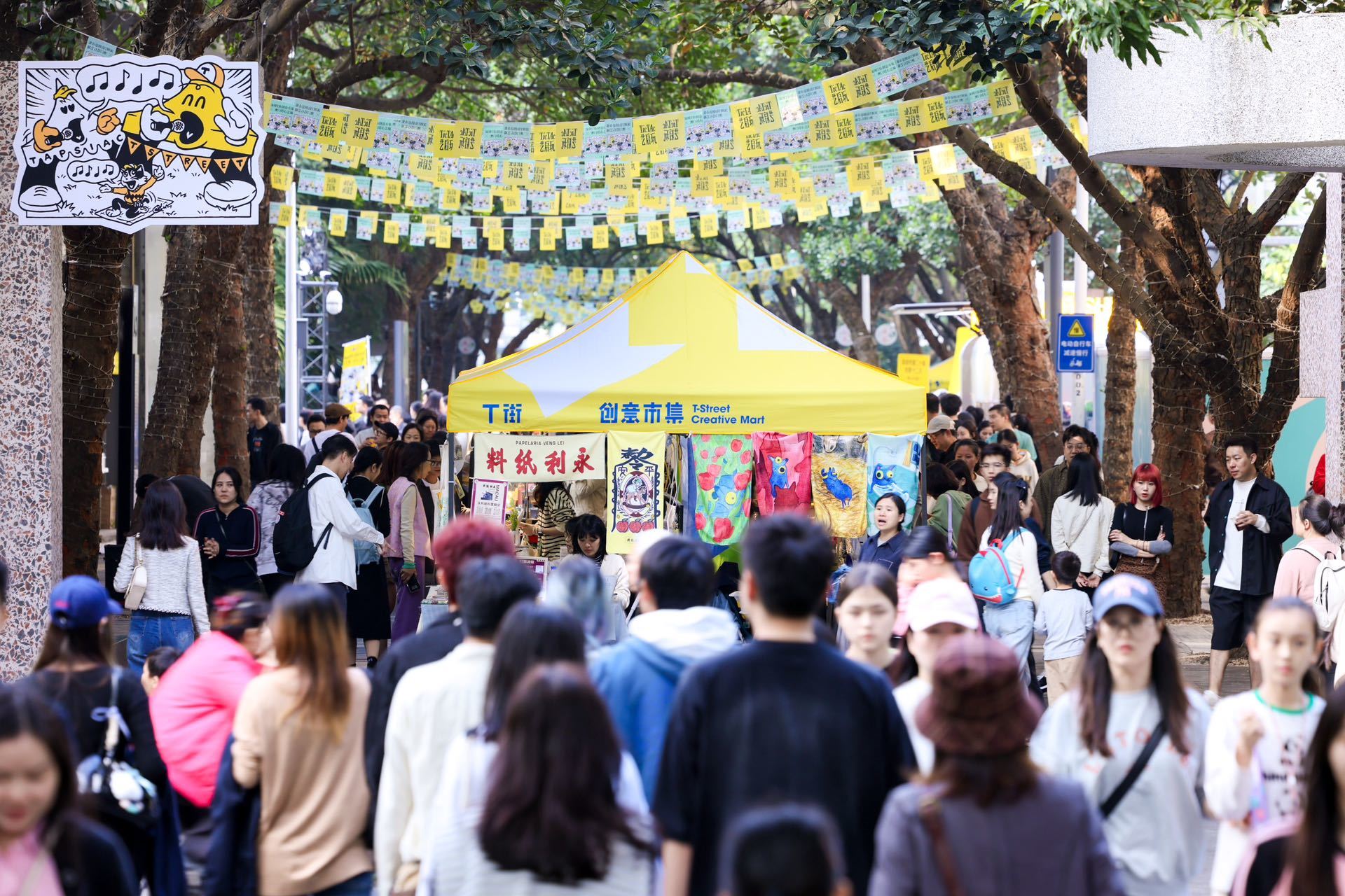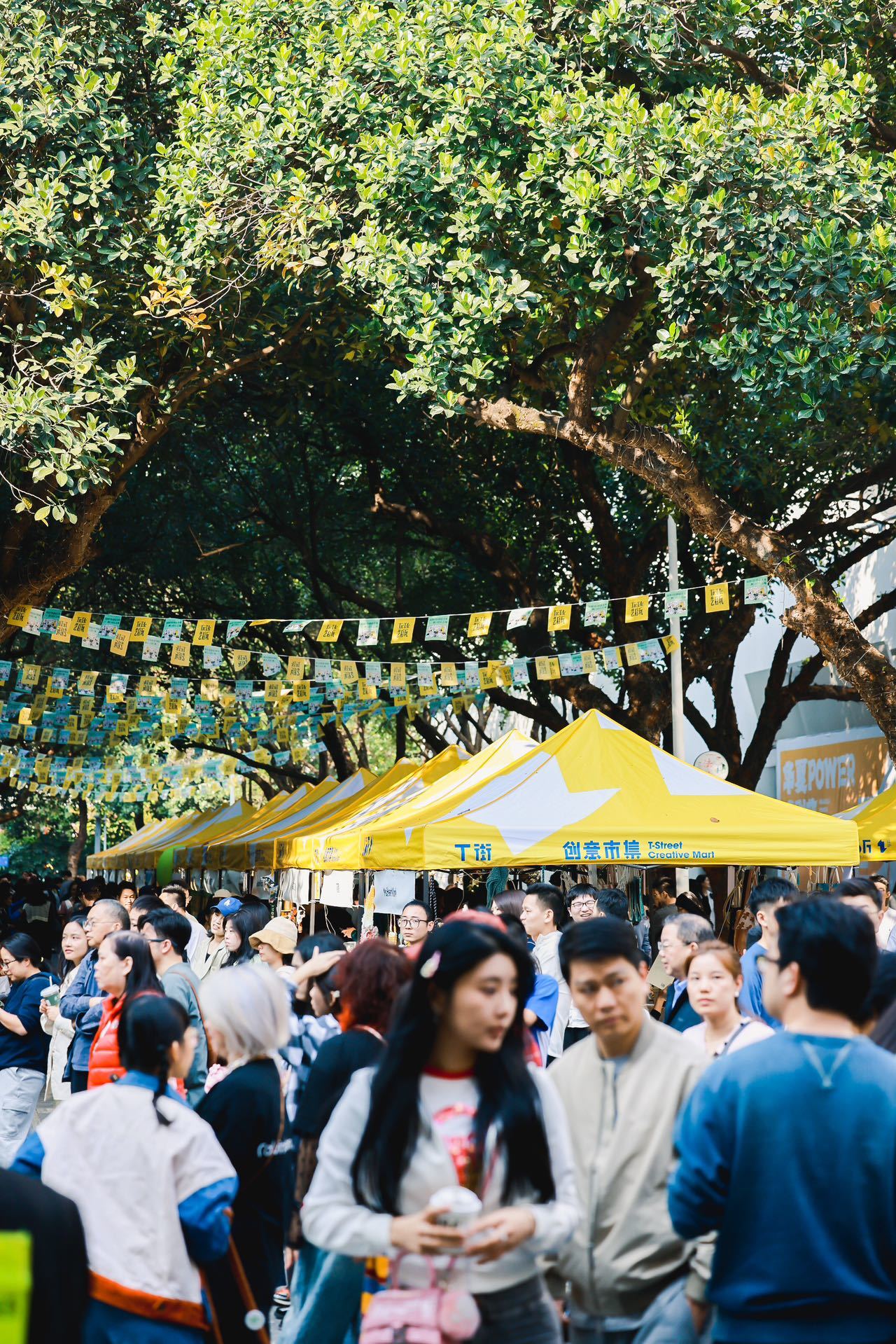 12月7日,在深圳华侨城创意文化园(OCT-LOFT)人来人往的主街上,一顶顶整齐排列的标志性明黄色帐篷间,T街创意市集“创意十二月”专项系列活动正式拉开帷幕。由华侨城创意文化园主办的T街创意市集,特别在澳门回归祖国25周年之际,携手澳门文化局主办的塔石艺墟市集,共同呈现创意市集、设计师沙龙、工作坊、音乐演出等多元活动,现场各类别具生活灵感的湾区文创产品,热络交谈的摊主与顾客,氛围感十足的露天乐队演出,有趣开放的沙龙分享……无不展现出粤港澳大湾区丰富的创意人文流动,为市民公众带来融合澳门与深圳双城文化特色的创意生活体验,亦为2024年深圳“创意十二月”的开篇注入不一样的活力。