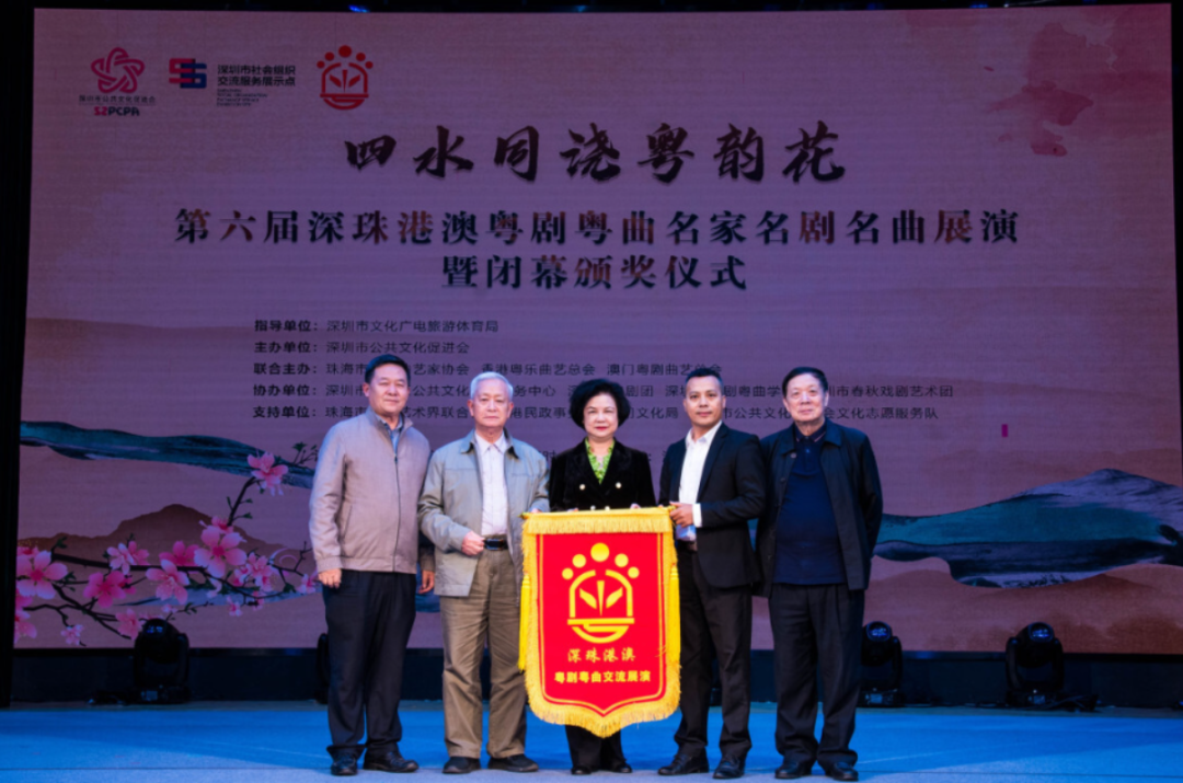 深圳地区代表杨素贤与肖柱荣将写有“深珠港澳粤剧粤曲交流展演”的大旗交到了下一届活动主办城市珠海地区的代表黄日权手中,为第六届深珠港澳粤剧粤曲交流展演活动画上了圆满的句号。展望来年,第七届四地展演活动将再次开启选拔、交流的历程。四地同根同心,共同浇灌这朵娇艳的粤韵之花,愿它开遍岭南大地,生生不息。