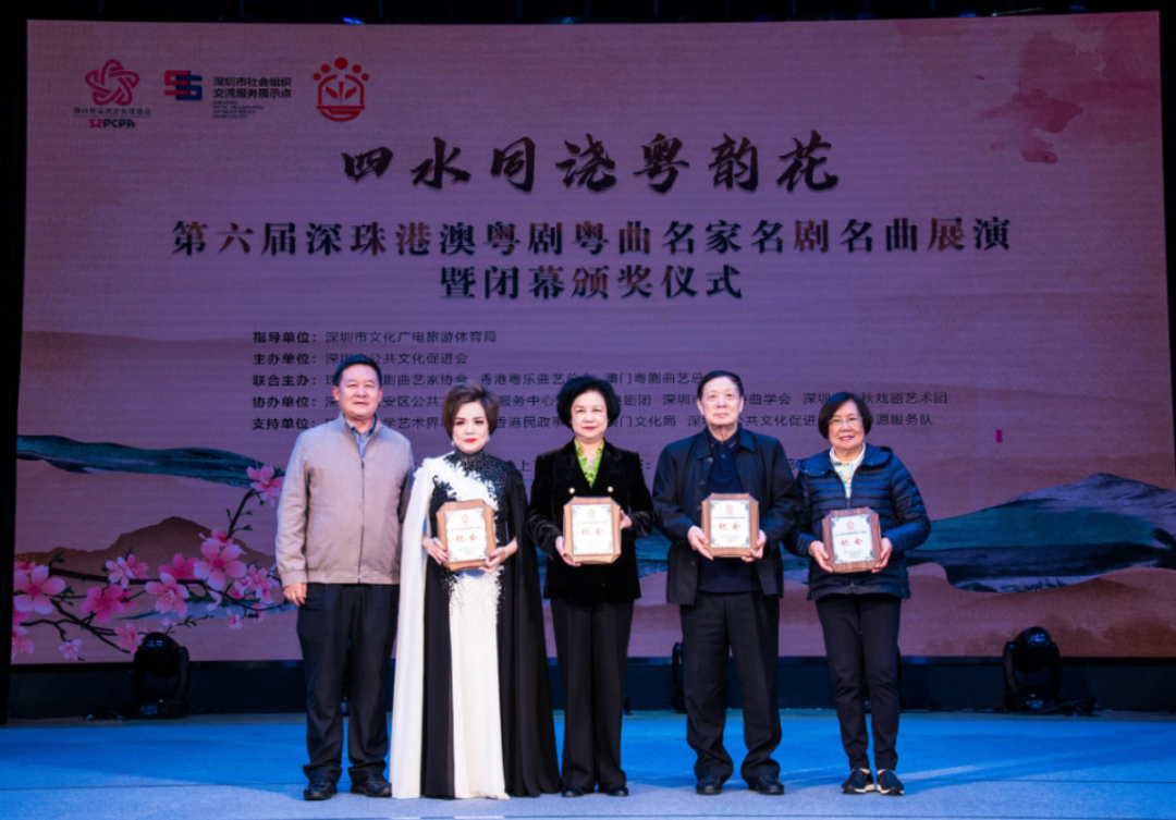 在活动的尾声,深圳市宝安区公共文化体育服务中心副主任刘明军,为深珠港澳粤剧粤曲交流展演活动四地发起单位代表颁发了特别纪念牌匾。