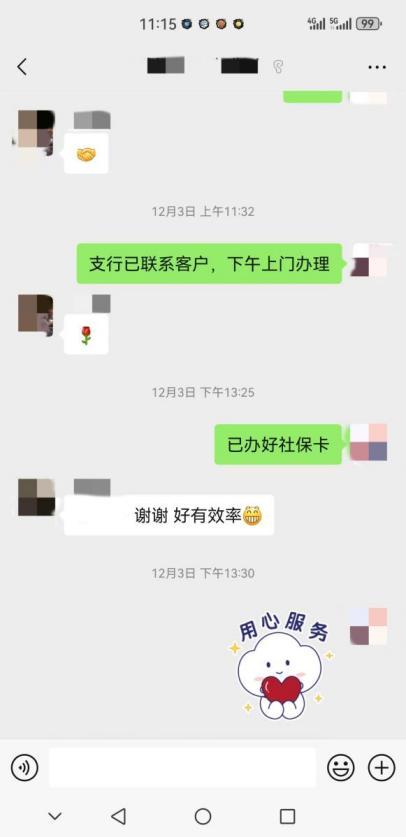 据了解,支行的工作人员在当天11点14分接收到办理任务,11点20分联系上王先生,下午1点30分就为王先生办理好了社保卡。这不仅展现了银行在应对突发需求时的专业素养和执行力,更体现了金融服务的速度与温度,为打通服务群众金融需求“最后一公里”保驾护航。