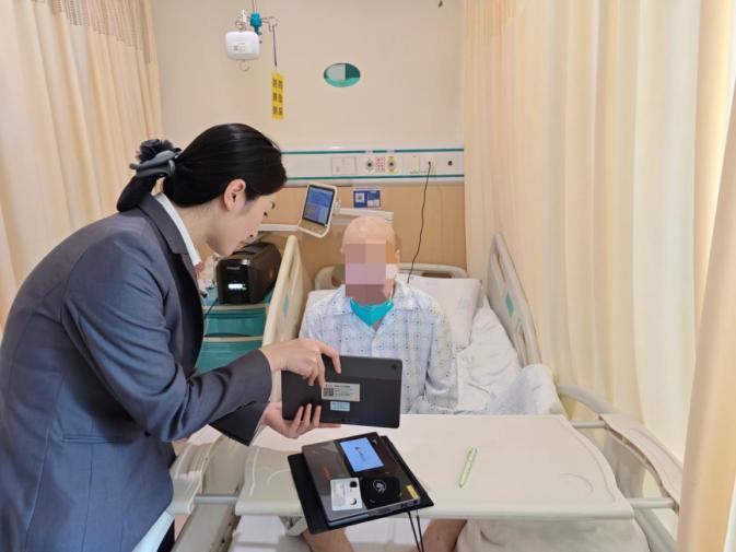 “真没想到,银行还能上门办理社保卡,帮我解决了大问题!”王先生躺在病床上,声音微弱却充满了感激。原来,因住院行动不便的王先生,急需办理社保卡支付大额医药费。在接到客户的求助电话后,广发银行深圳分行工作人员带上便携式社保卡发卡机、打印机和电脑赶到王先生病床前,迅速布置好了临时的“银行柜台”。工作人员耐心地协助王先生进行信息核实和文件签署,并现场解决了王先生因面部肿胀无法通过人脸识别的问题,数分钟后,一张崭新的社保卡递到了王先生的手中。他轻抚卡片仿佛能感受到卡片上的温度,“这不仅仅是一张卡片,更是广发银行对我的关怀和帮助。”
