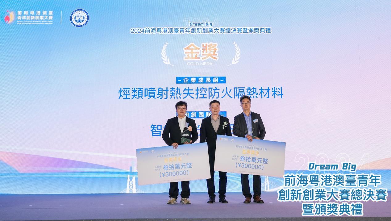 2024前海粤港澳台青年创新创业大赛于今年6月启动,共吸引1287个项目参赛,其中港澳台及国际项目报名量达797个,占比为62%。历经初赛、半决赛共选拔出30个优胜项目在总决赛舞台上展开激烈角逐,最终评审选出总决赛获奖项目及企业,其中金奖2名,银奖4名,铜奖6名,优胜奖18名。其中,专注智能激光工业母机研究的国之重器项目、专注烃类喷射热失控防火隔热材料的中森新材料(深圳)有限公司分别获得团队组及企业组金奖。