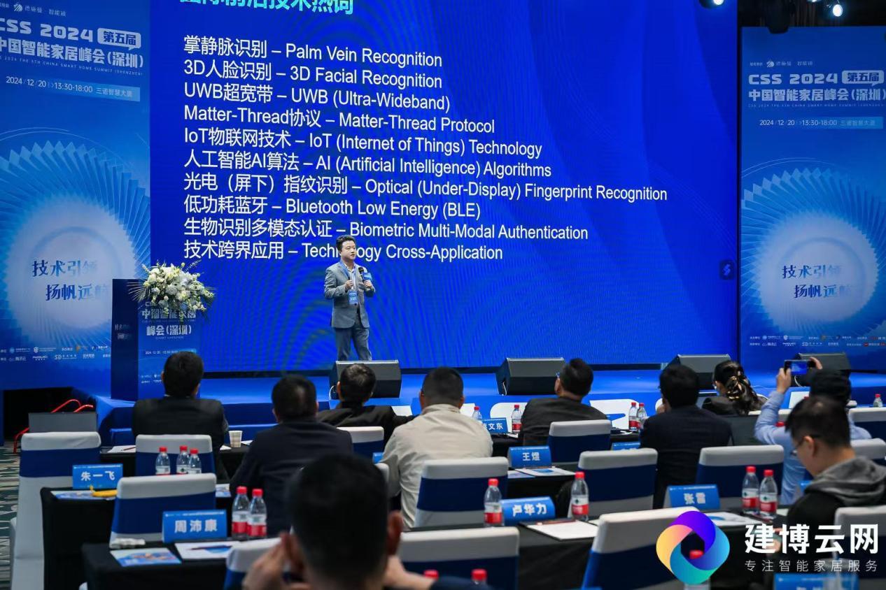 峰会还设有尖端技术展示环节,吸引了多家知名企业参与,全面展现了智能家居行业的技术创新实力。其中,腾讯云智能硬件行业方案负责人马英奎详细分享了AI算法解决方案在智能家居领域的应用;德施曼 CMO 姜康琦结合当下趋势,深入阐述了智能锁面临的营销变革;正和微芯创始人潘攀重点解析了超低功耗毫米波雷达技术对智能门锁精准感知的赋能;圣点科技市场总监张军军介绍了生物识别与AI算法整体解决方案的最新技术突破;创米数联总经理孟四海则展示了“从‘芯’到‘端’”的智能门锁全链条解决方案,为智能家居生态链的发展提供了技术支撑。