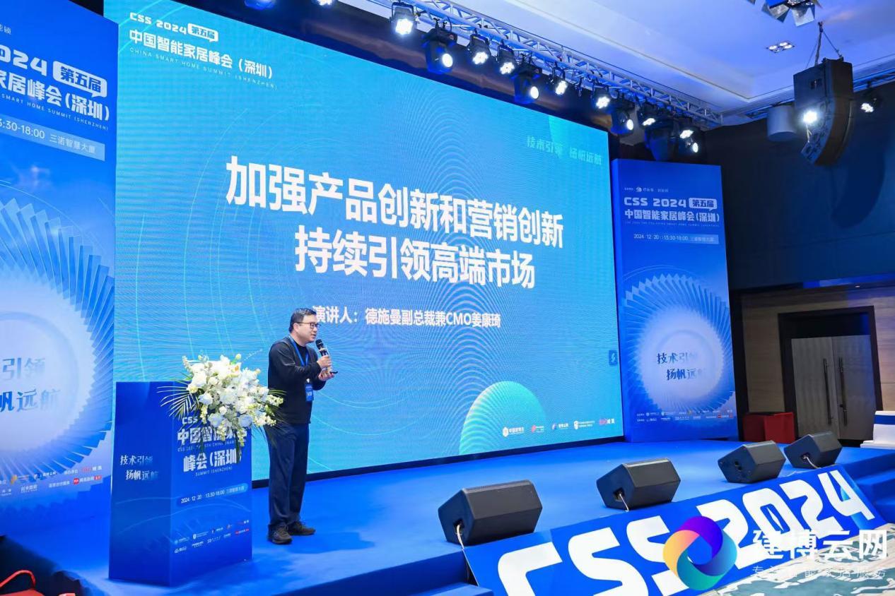 12月20日,德施曼·智能锁总冠名赞助的2024第五届CSS中国智能家居峰会在深圳圆满举办。本次峰会由中国建博会、中国消费品质量安全促进会消费类电器工作委员会主办,中国建博葵花奖评选委员会和建博云网承办,中国电研CVC威凯协办,并获得腾讯云、正和微芯、圣点科技和创米数联等企业的大力支持。活动以“技术引领·扬帆远航:国内内卷定位与海外市场拓展”为主题,吸引了智能家居行业的众多领军企业与嘉宾,共同探讨行业发展机遇与未来挑战。