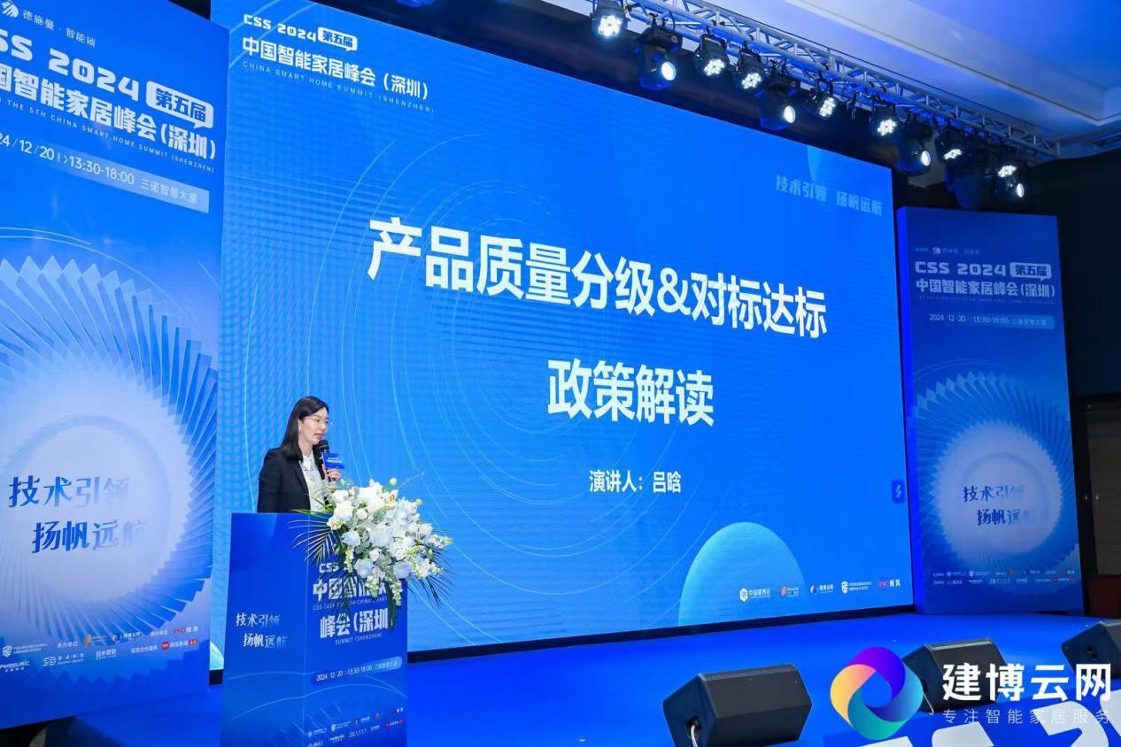 在峰会的主题演讲环节,多位行业专家围绕智能家居及智能门锁行业的关键议题展开分享。中标标准技术研究所有限公司公关事务部部长吕晗,以“产品质量分级与对标达标制度解读”为主题,详细阐释了产品质量分级制度的重要性,并分享了对标达标行动的最新进展,为与会企业提供了在质量管理和标准化工作中的实践指导。吕晗强调,推动产品质量分级和对标达标制度的实施,是提升行业整体竞争力、促进高质量发展的关键路径。