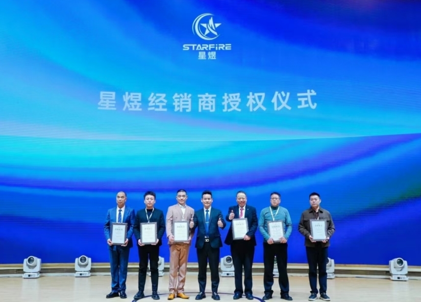 目前,星煜电焰已经与近100个地市的经销商建立合作关系。发布会现场,星煜电焰开启全面规模化经销商招募,“计划和2000多个区县的招募与合作,计划在2025年协同经销商开设超500家线下门店,完成超过100万台的销量。”星煜电焰董事长林明汉表示。活动现场,举行了经销商授权仪式,并与海湾控股(中国)有限公司签订10万台电焰灶采购协议。