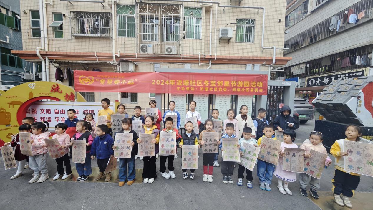 活动结束后,流塘社区相关负责人表示,此次冬至邻里节游园活动,不仅是一次对传统文化的致敬与传承,更是一次社区凝聚力与和谐氛围的生动展现。通过让孩子们亲手绘制冬至,不仅激发了他们对传统文化的兴趣与热爱,也促进了家庭与社区之间的互动与交流。接下来,流塘社区党委也借此机会,向广大居民发出了热烈邀请,希望未来能有更多人参与到社区的文体活动中来,共同为构建和谐、美好的社区环境贡献力量。