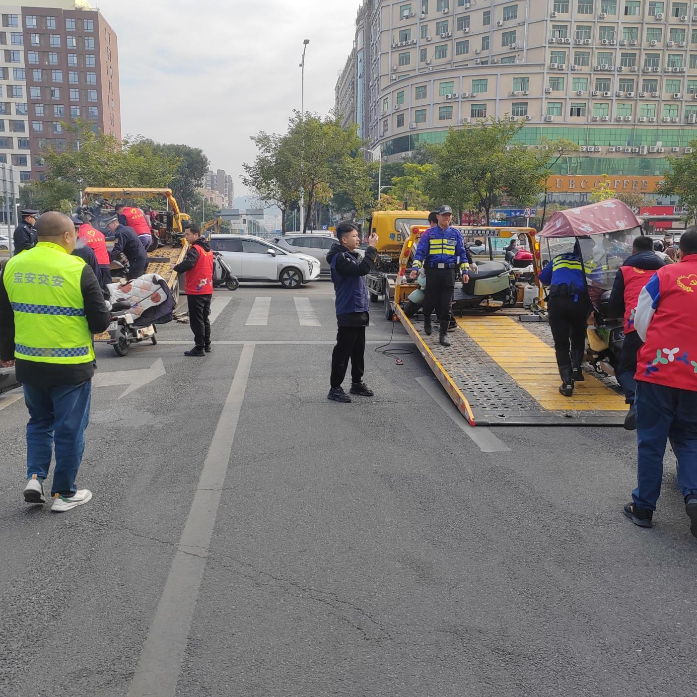 为强化地铁口周边市容秩序管控,规范非机动车停放秩序,12月24日上午,西乡街道组织综合行政执法队、交安办、交警中队、社区、志愿者在固戍地铁站A口周边的固戍二路开展非机动车乱停放整治行动,对地铁站附近车辆乱停放、影响出行、滋生安全隐患等乱象开展集中整治,营造“整洁便民、停放有序”的城市秩序。