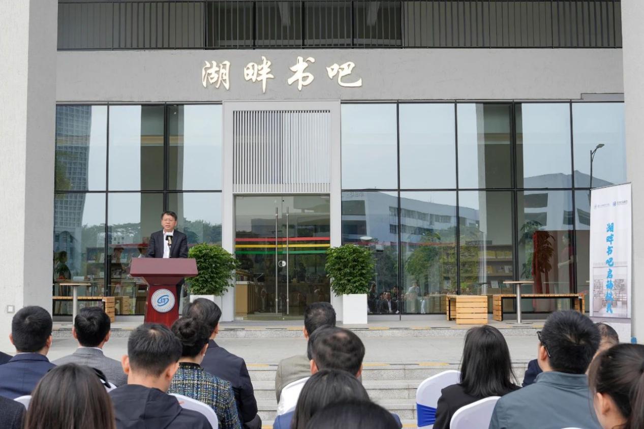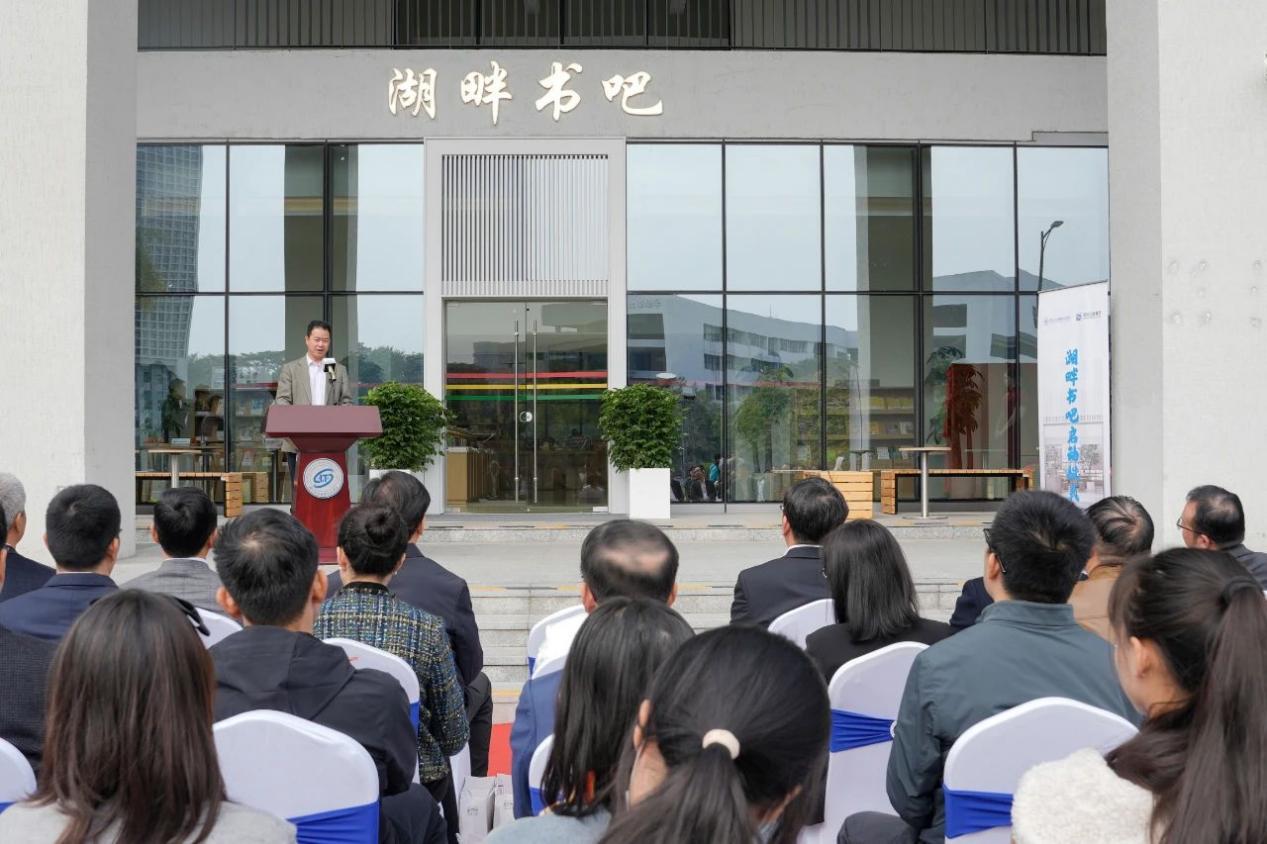 “湖畔书吧是深圳出版集团与深圳信息职业技术学院首次携手合作的成果,不仅是各自优势资源的有效整合,更是双方在文化领域融合发展的创新探索。”唐汉隆董事长在致辞中提到。唐汉隆董事长表示,“高校书吧”是出版集团围绕“城市公共文化空间+”理念打造的全新文化品牌,是开拓多元文化空间产品线的重要组成部分,旨在通过深层次联动高校和书吧两大文化场所,完善高校公共文化服务体系,搭建师生自由阅读平台。唐汉隆董事长表示,下一步,集团要立足高标准、高品质,依托多年深耕全民阅读和文化商业领域所积累的资源优势,持续丰富内容供给,优化文化服务,努力将湖畔书吧打造成为具有代表性、引领性的新型高校阅读阵地,为校园文化提升赋予精神底蕴,为城市文化建设注入新的活力。期待双方能以湖畔书吧为契机,联动社会资源,进一步密切校企合作,在人才培养、产教融合等方面展开深入交流,开启优势互补、互利共赢的合作新篇章。