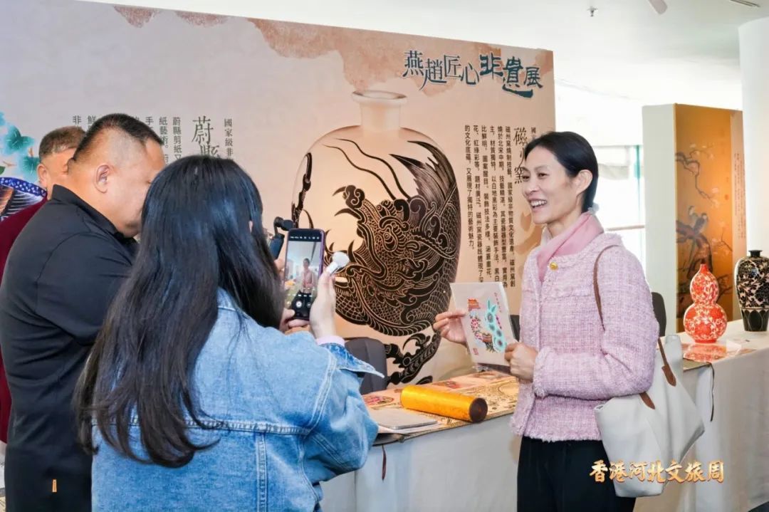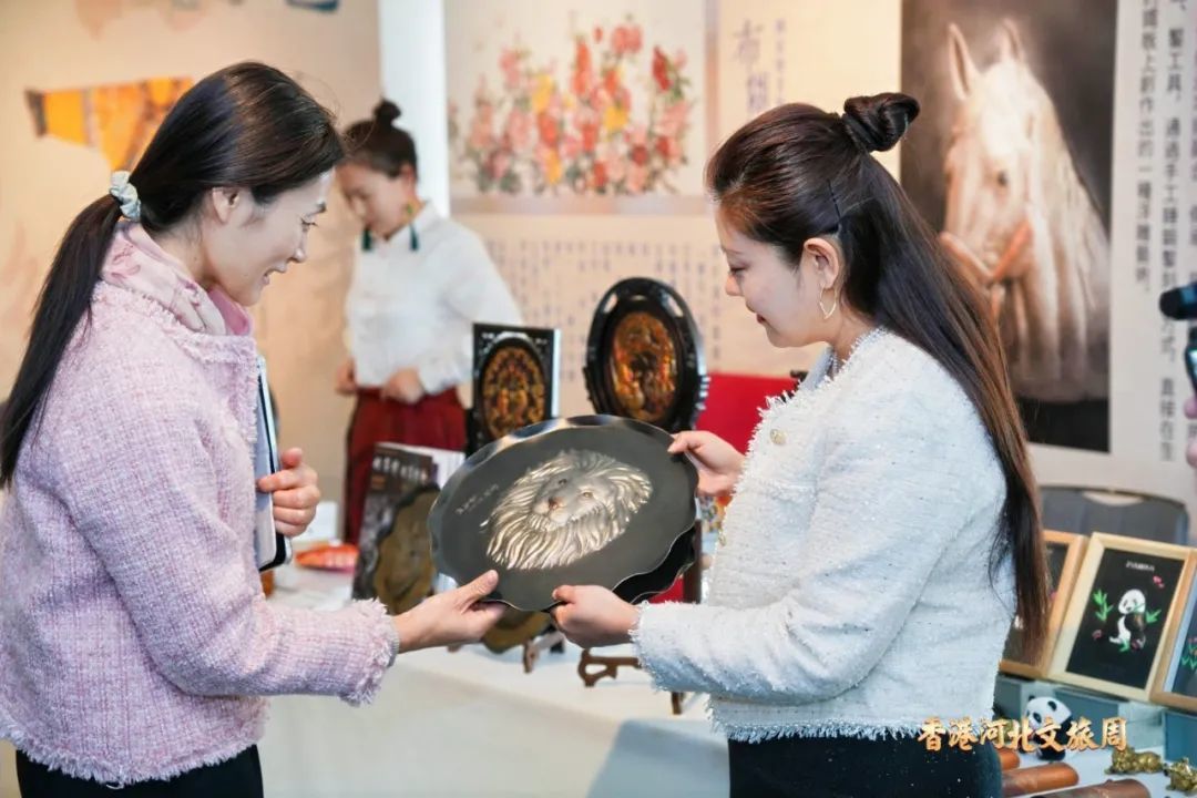 在沉浸式推介的同时,“燕赵匠心”非遗展和“冬游河北”图片展也同时举办,非遗展动静结合,丰宁布糊画、古琴斫制技艺、徐水舞狮等河北非遗传承人进行现场“动”态演艺,定州缂丝、衡水内画、磁州窑、古法琉璃等精美艺术品静态展览,展现出河北非遗技艺的精彩与惊艳。图片展由“冬游河北过大年”“冬季到河北来滑雪”“冬季到河北泡温泉”三个板块组成,集中展示河北冬季核心旅游资源产品,让冰雪燕赵与暖阳香港交映生辉。