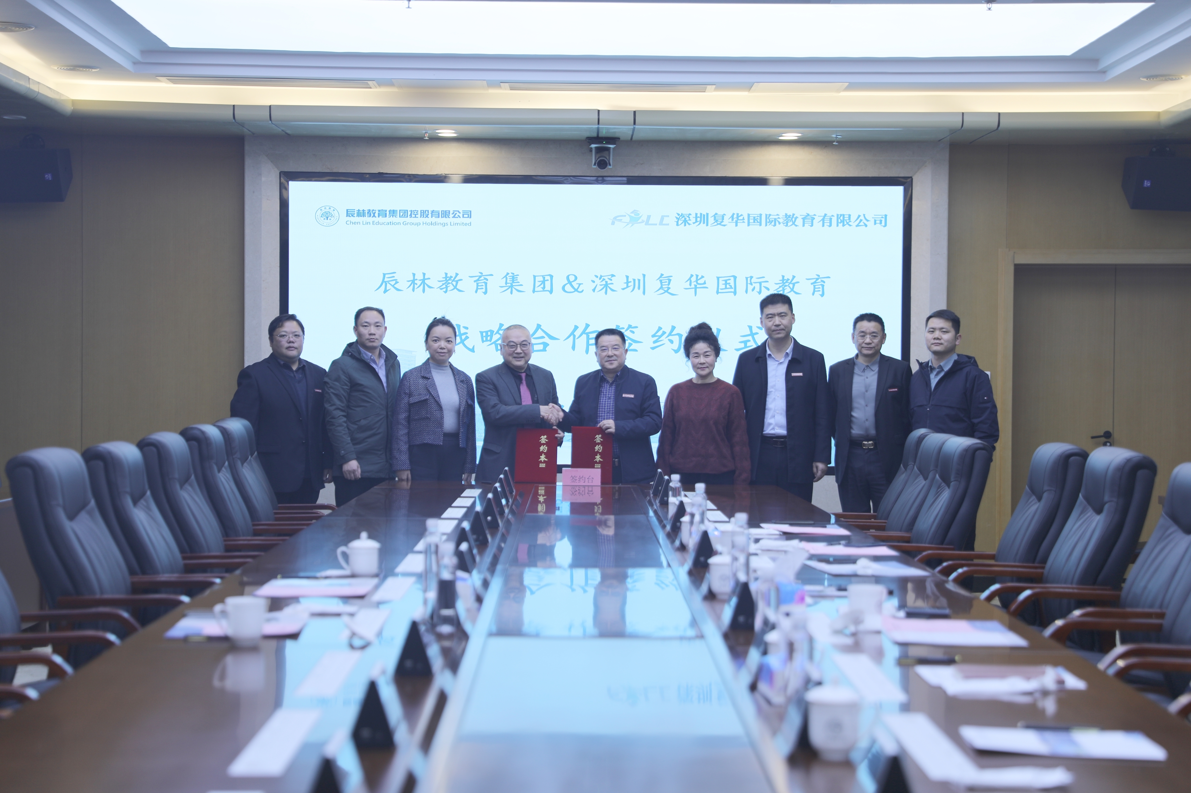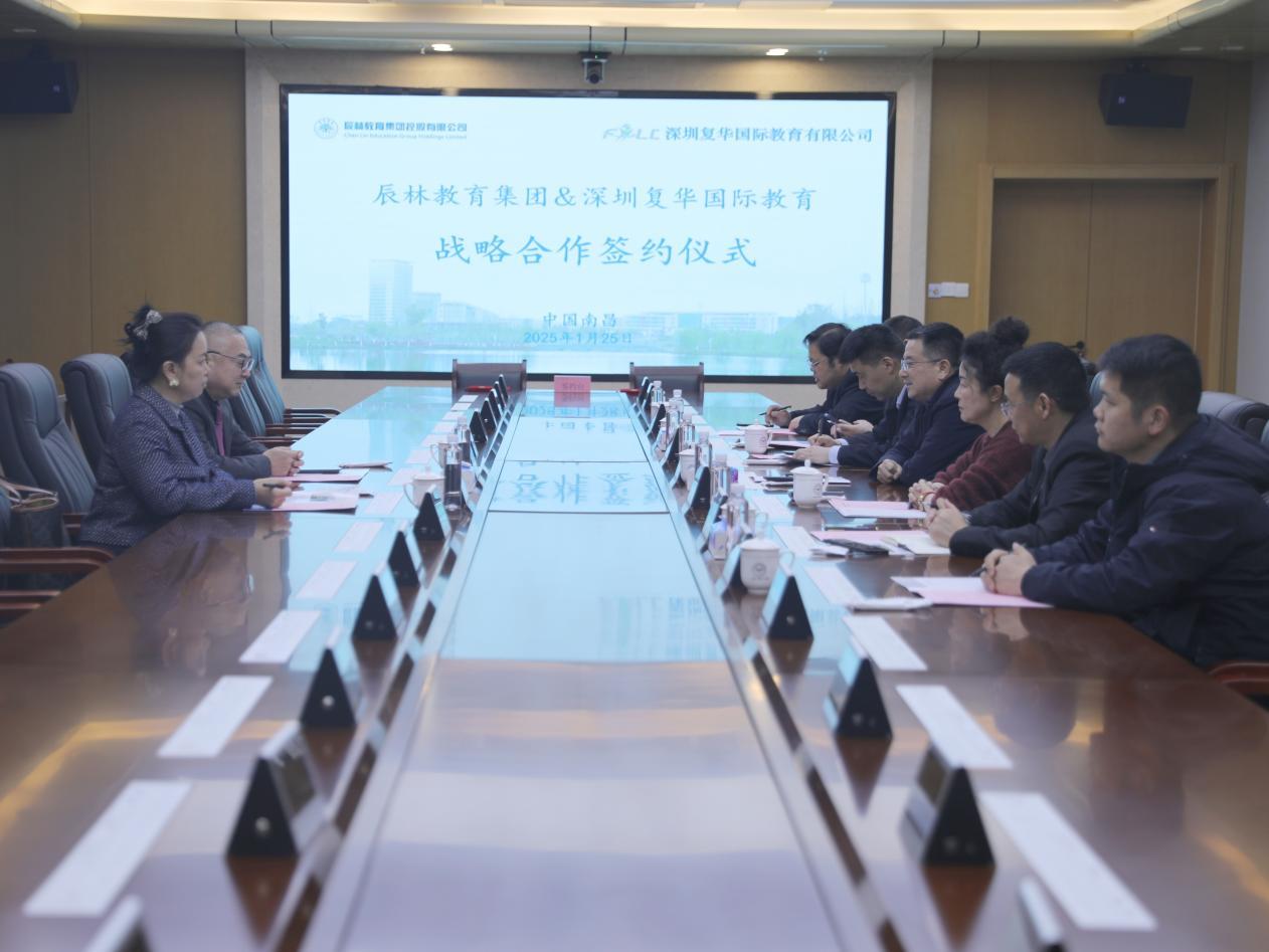 2025年1月25日下午,辰林教育集团控股有限公司与深圳复华国际教育有限公司战略合作签约仪式在江西应用科技学院三元大厦一楼会议室举行。辰林教育集团控股有限公司董事局主席黄玉林、副总裁黄文霞,深圳复华国际教育有限公司董事长范朝斌、总裁陈洁琼出席签约仪式。黄文霞主持签约仪式。