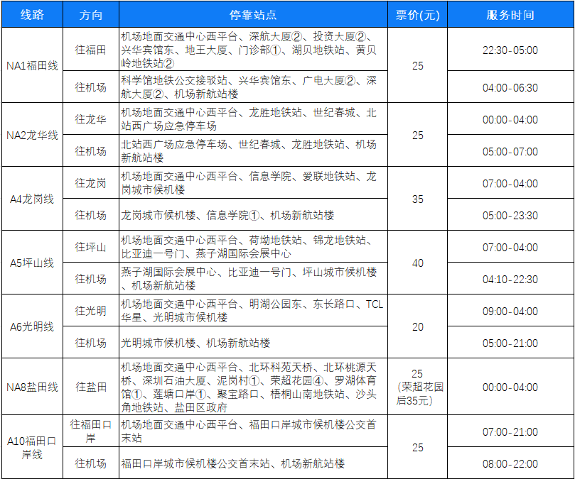 *班次、站点信息可通过微信公众号“深圳汽车客运”查询。