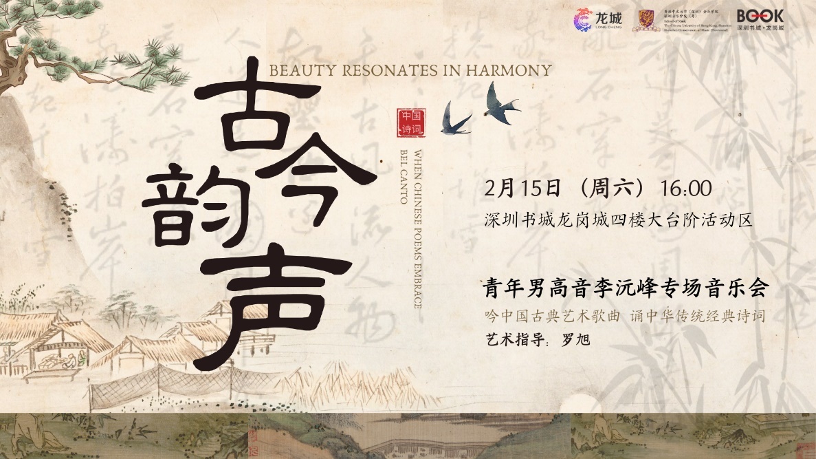 活动介绍:中国古典诗词韵律优美,是五千年传统文化流传下来的瑰宝。港中深音乐学院“青年艺术家”男高音李沅峰与艺术指导罗旭将带来中国古典文学元素为内容相融合的“古韵今声”专场音乐会,与广大观众、读者一起感受文字之美、律动之美,分享传统文化给我们带来的喜悦。