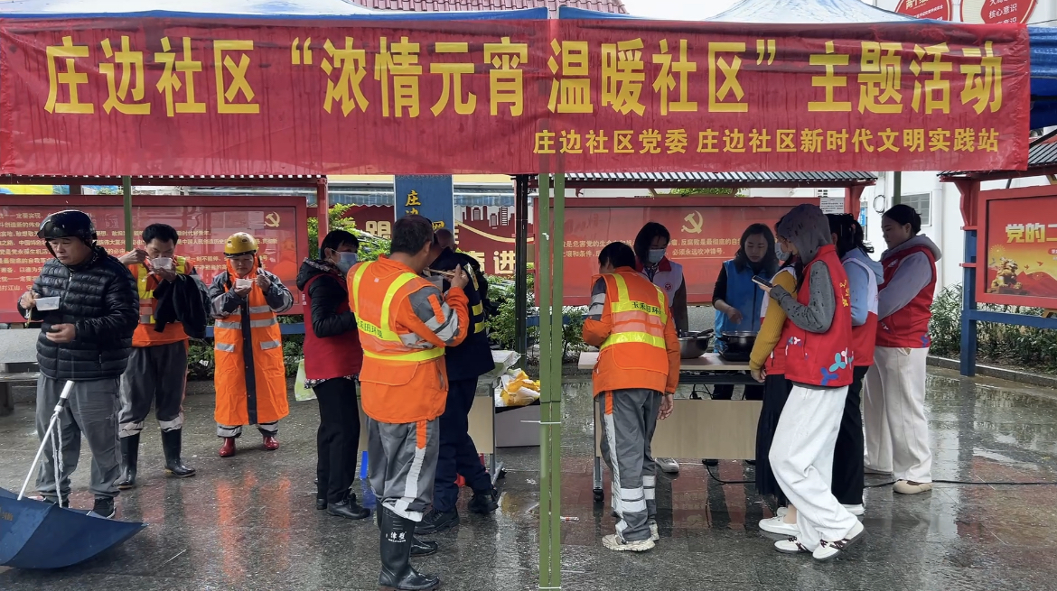 2月12日,正值元宵佳节,西乡街道庄边社区以“浓情元宵 温暖社区”为主题,在薪火小站开展了一场别具温情的送温暖活动。尽管细雨绵绵,但庄边社区负责人带领工作人员、社工以及志愿者,冒雨为坚守岗位的环卫工人,以及快递小哥等新业态一线从业人员送上热气腾腾的汤圆,传递节日的关怀与祝福。