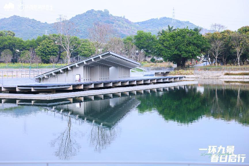 作为深圳首个绿道与碧道合一的生态廊道,环西丽湖绿道优先考虑生态保护,遵循“低干扰、轻介入”建设模式。绿道主线环绕西丽水库周边的城市、村落、山林、水系,形成“一环九景”的空间格局,同时融合循水、穿林、见湖、溯溪、问山五大主题段,打造超100万平方米人与自然共享的“森林居所”。其中包括问山叠水、书卷丽川、白芒拓印、写意三河、萤灯碧苑、稻香尺案、横塘垂砚、悦动大磡、水漾起笔等9个景观节点。全线设有问山叠水驿、白芒驿、草涧驿、横塘驿、微风驿等驿站。深圳市南山区建筑工务署市政工程部副部长李达伟提到:“环西丽湖碧道的建设亮点主要体现在建设品质、生态修复和环境保护等维度。比如我们的示范段工程凭借高标准的生态设计理念和可持续建设模式,就荣获了多项国际大奖。”