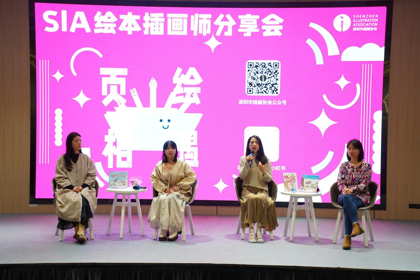 在“页绘相遇”绘本分享会上,四位深圳市插画协会的资深插画师携其原创绘本作品,与现场观众分享了创作背后的故事与灵感。他们用细腻的笔触勾勒出一个个充满童趣与想象力的世界,带领观众踏上了绘本的奇妙旅程。活动现场,插画师们还向幸运观众赠送了精美的绘本,将阅读的快乐与艺术的魅力传递给更多人,激发了市民对绘本艺术的浓厚兴趣。