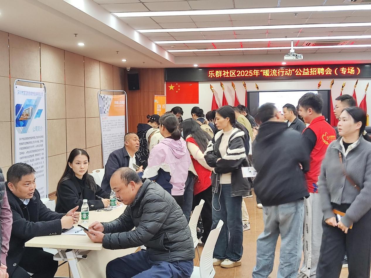 西乡街道乐群社区于2月25日在社区“百姓客厅”举办“暖流行动”公益招聘会,聚焦居民“家门口就业”需求,搭建企业用工与群众求职精准对接平台。现场有天域人力资源、宝玉智慧城市服务、生活魔方、毓华电子科技等10余家优质企业及社区商户参与,提供工程师、行政文员、月嫂等60余类岗位,覆盖就业需求200余人次,现场达成初步就业意向21人。