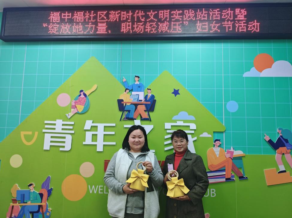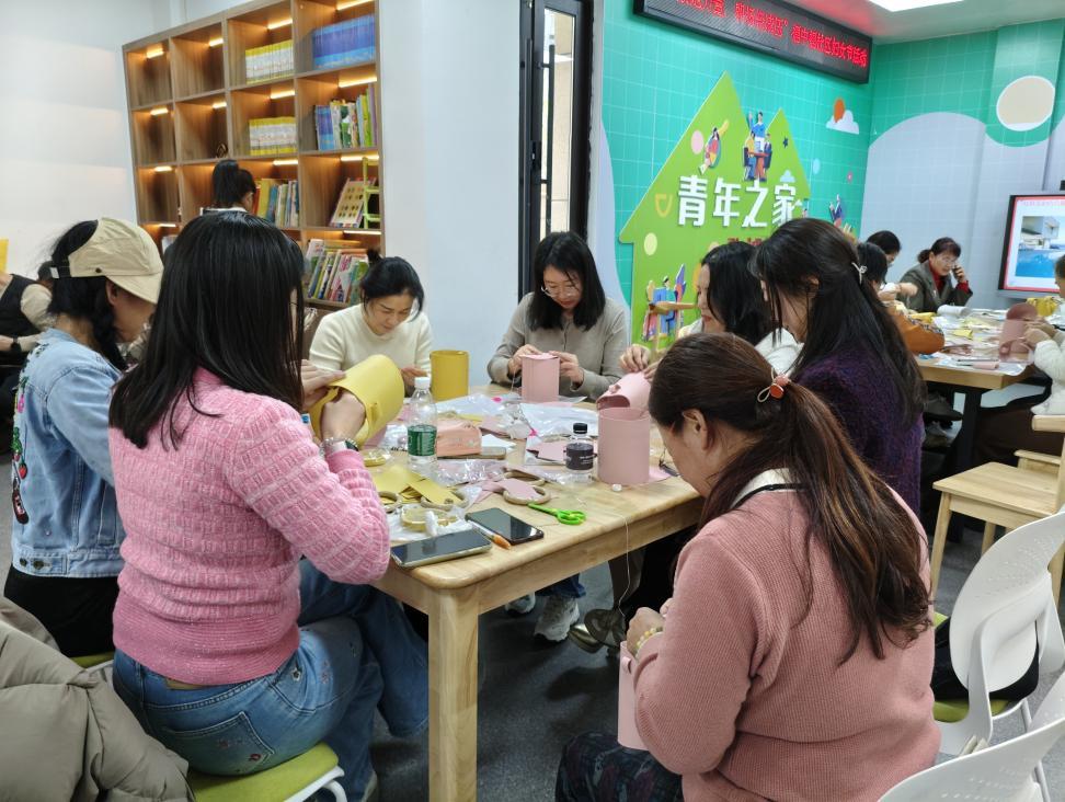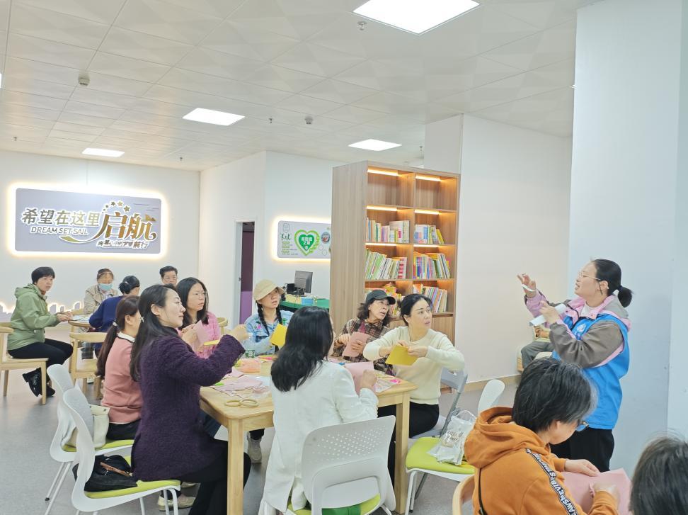 活动尾声,参与者手持自制手工包包合影留念,并积极分享感受。“天天忙得晕头转向,压力超大,来这儿学了减压技巧,做手工包时心都定了,一针一线把压力都缝没了,舒畅!”李女士如是说。此次活动不仅为社区职场女性提供了放松身心的机会,也增强了她们应对压力的能力。
