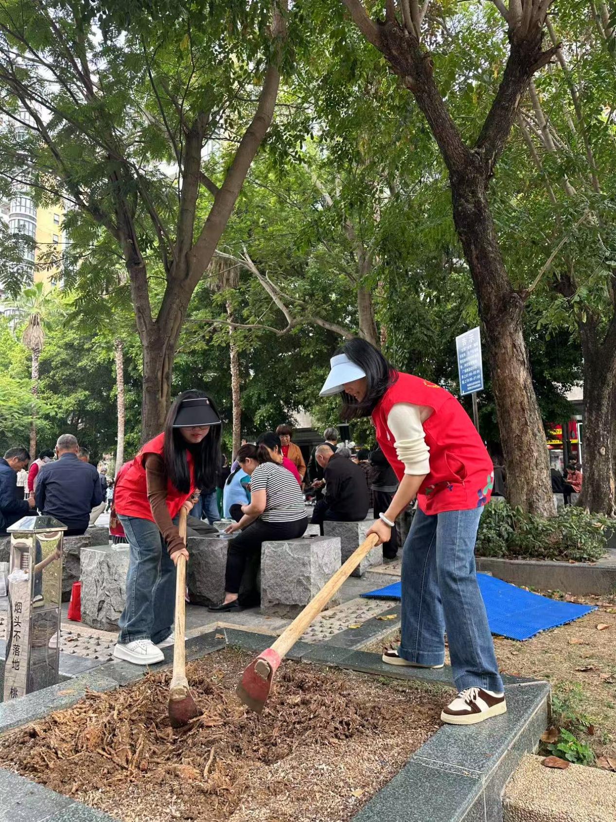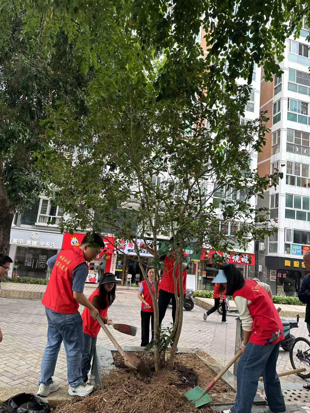 本次活动将20余名参与者分为4个攻坚组,每组5人,明确“挖坑—扶苗—培土—浇水”分工,高效推进植树任务。各组争先恐后:第一组党员半小时完成种植;第二组创新采用“三人扶苗、两人填土”法,提升栽种效率;第三组发动居民认领树木,建立“一对一”养护台账;第四组结合法治宣传,向围观居民同步普及环保知识。