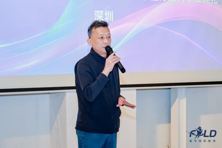 黄稚城先生作为一名国际课程的家长代表,他表达了对孩子未来的期待:“作为一名父亲,我一直在思考,如何让孩子在未来的学习中找到最适合自己的成长路径。今天看到这么多优秀的毕业生站在这里,我更加坚定了自己的选择——让孩子加入复华国际教育的体系。过去我并不是一位优秀的爸爸,把自己的意愿强加在孩子身上,但是我在努力的与孩子共同成长!”