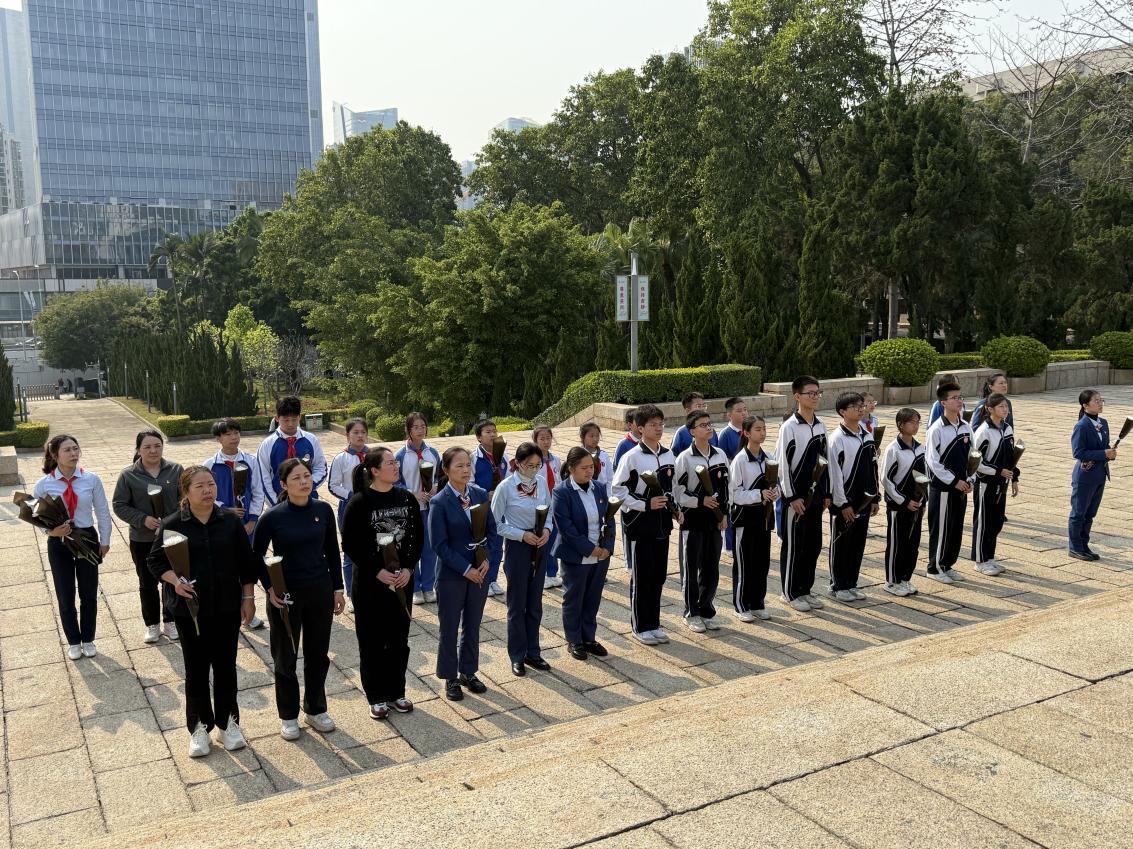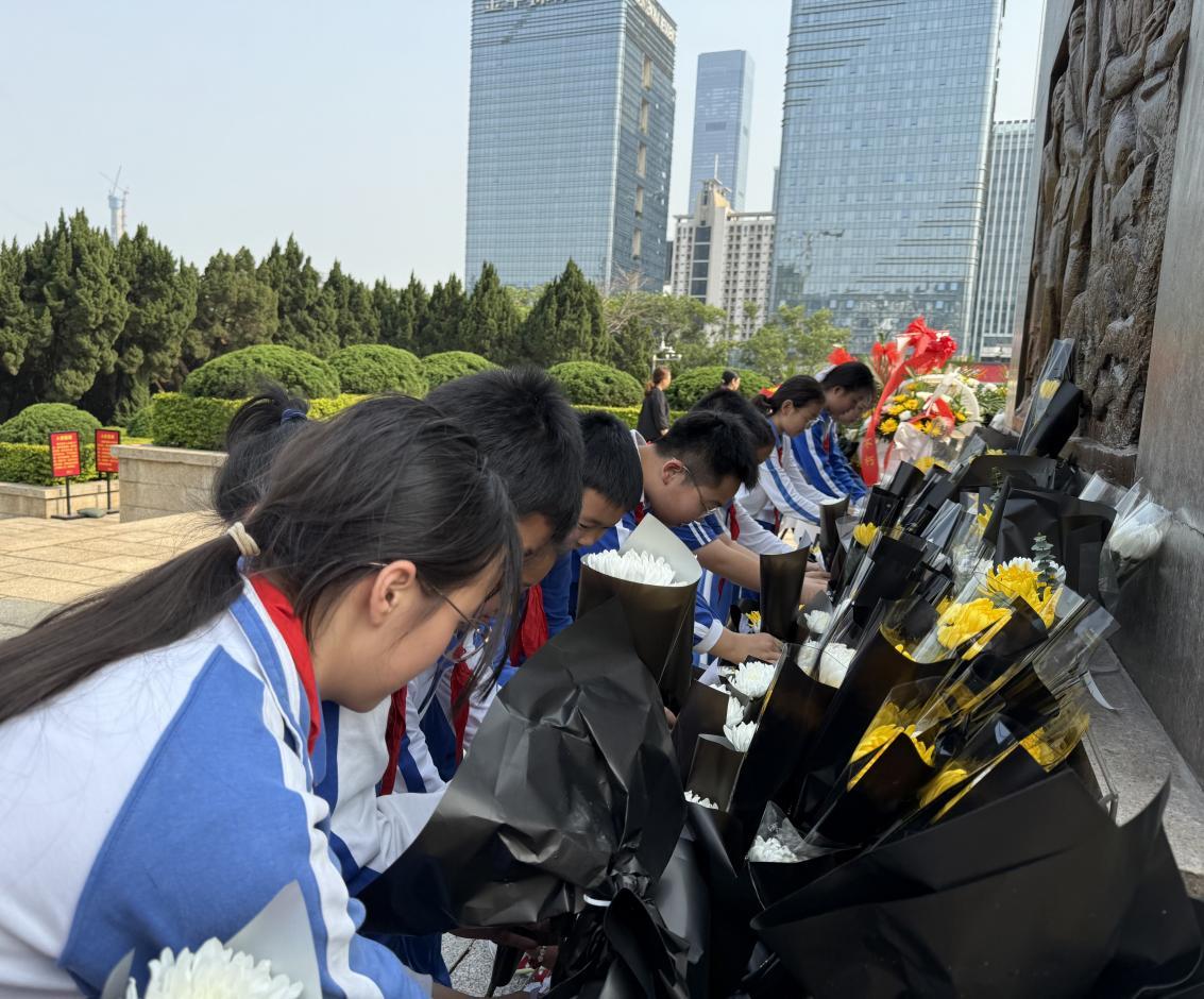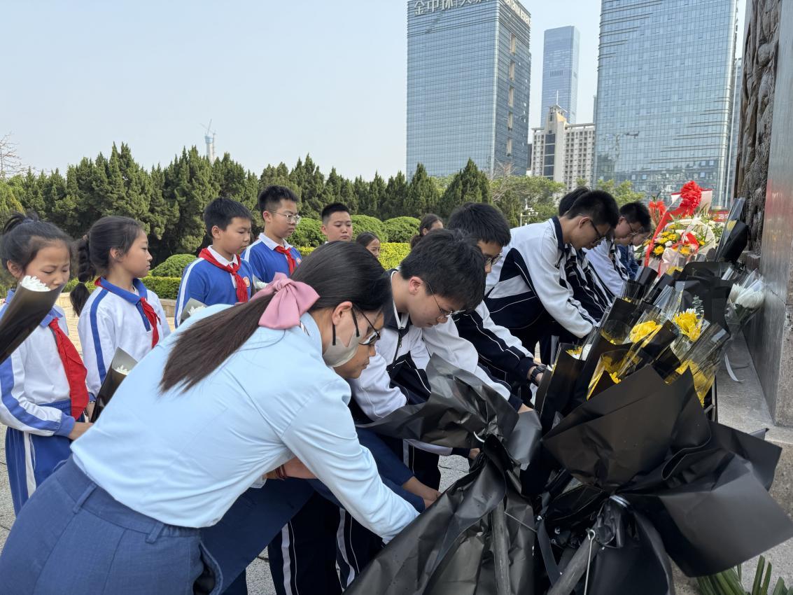 苍松翠柏掩映下的烈士陵园庄严肃穆,巍峨的革命烈士纪念碑矗立于青天之下。活动在激昂的《中华人民共和国国歌》中拉开序幕,全体人员整齐肃立,面向纪念碑默哀致敬,向革命烈士行三鞠躬礼,以最崇高的敬意致敬为民族独立、人民解放和国家富强英勇献身的革命先烈。伴随着低沉悠扬的《献花曲》,党员、团员和少先队员代表依次缓步上前,将寄托哀思的白色菊蕊敬献于纪念碑前,朵朵白菊凝练着对英烈的无限崇敬,层层花阶见证着红色基因的永续传承。