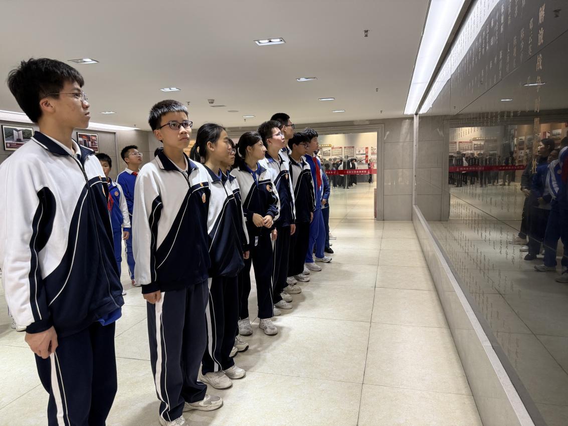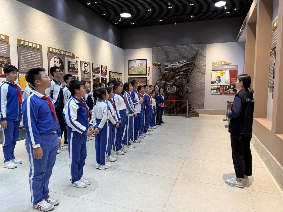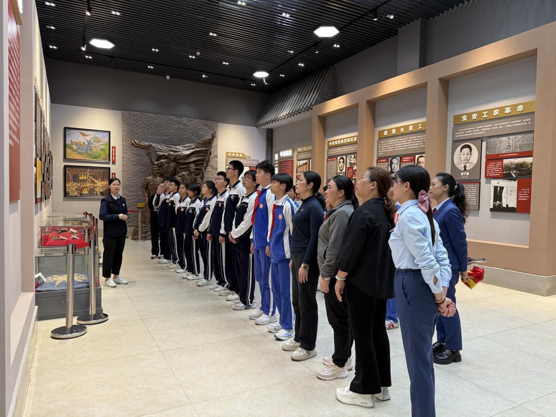 随后,师生代表走进革命烈士纪念馆,在讲解员深情且生动讲述革命先烈的英雄事迹,馆内陈列的珍贵文物、历史照片和复原场景,生动再现了革命先烈抛头颅、洒热血的壮烈历程。“这位烈士牺牲时年仅19岁,他在最后一封家书中写道‘为国捐躯,死而无憾’……”讲解员动情的解说让在场党员、团员和少先队员红了眼眶。少先队员王同学凝视着展柜中锈迹斑斑的烈士遗物轻声说道:“原来英雄不是课本里的符号,他们也曾是和我们一样有血有肉的普通人,却用生命换来了今天的和平。”