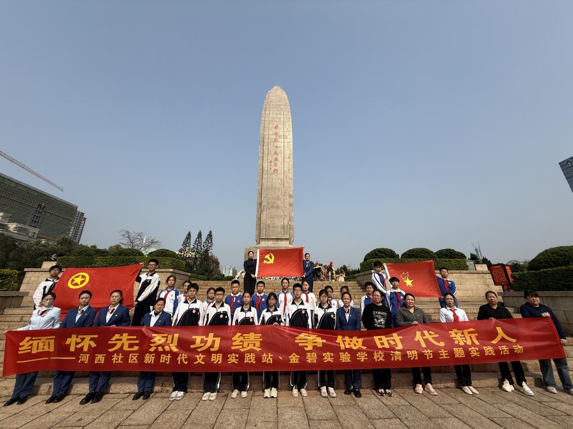 为深切缅怀革命先烈,弘扬爱国主义精神,引导青少年赓续红色血脉。近日,河西社区新时代文明实践站携手金碧实验学校组织开展了“清明祭英烈”主题纪念活动。通过校社联动模式,创新打造沉浸式红色教育实践课堂,以“党员带团员、团员带队员”的传帮带形式,组织师生代表走进烈士陵园,开展实地教育,让思政教育从书本走向现实,从课堂延伸到红色教育基地,让红色信仰在庄严仪式中深植心田。
