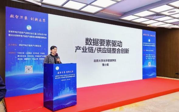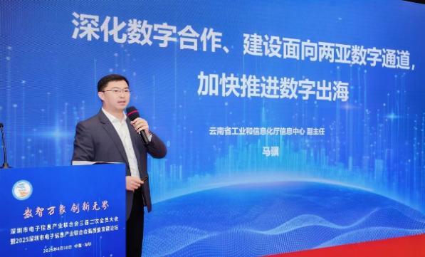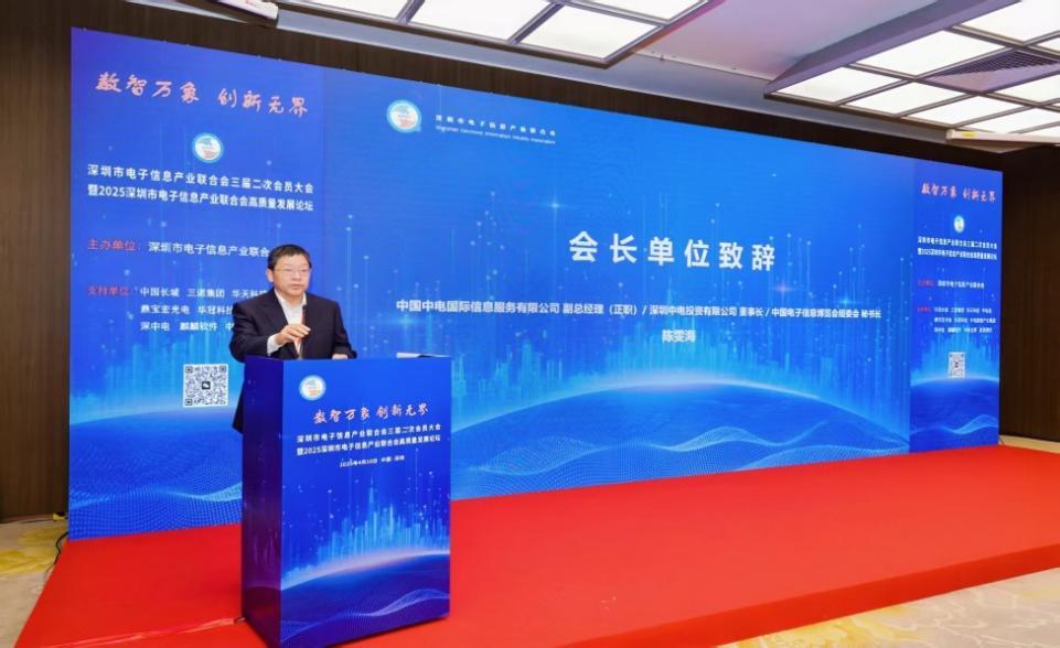 中电信息副总经理陈雯海代表会长单位董事长、深电联会长郭昭平出席大会并致辞。他指出,当前全球新一轮科技革命与产业变革加速演进,电子信息产业正处于由高速增长向高质量发展跃升的关键期,亟需产业链各方在数智融合背景下协同创新、凝聚共识、携手前行。
