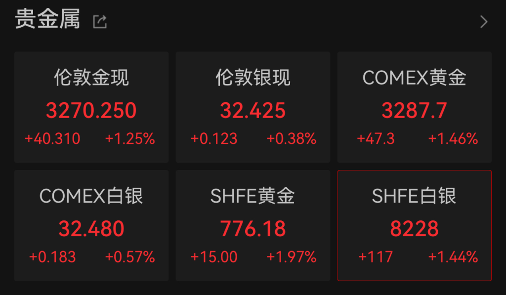 4月16日早间,伦敦现货黄金价格突然直线拉升,首次突破3270美元/盎司,截至发稿时,最高至3275.42美元/盎司,日内上涨超过40美元/盎司;COMEX黄金期货价格则突破3280美元/盎司关口。