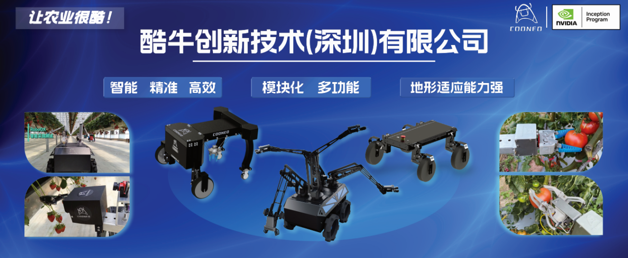 COONEO酷牛由荷兰瓦赫宁根大学博士、深圳市海外高层次人才创立,致力于将先进的AI、IoT、机器人等技术应用于智慧农业、生态环保等领域。公司现已研发RoboOX 系列、YAK、NEOR系列、Stier系列智能农业机器人及串/并联机械臂,激光除草器、机械剪、刚/柔性机械手等适应精准除草、自动修剪、果蔬采摘等场景的机器人末端执行器等产品并获得多项专利及奖项,覆盖耕、种、管、收、运等各个生产环节。
