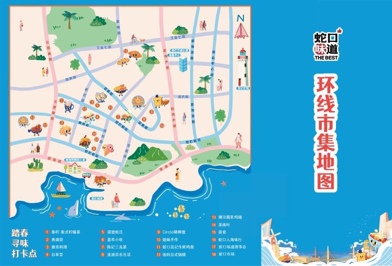 美食区:汇聚蛇口环线30家特色店铺,涵盖粤菜、海鲜、潮汕风味等多元美食,也有百草堂祖传凉茶铺、张妈台式美食、邱记炭炉烧鸡等本土老字号小吃甜品。