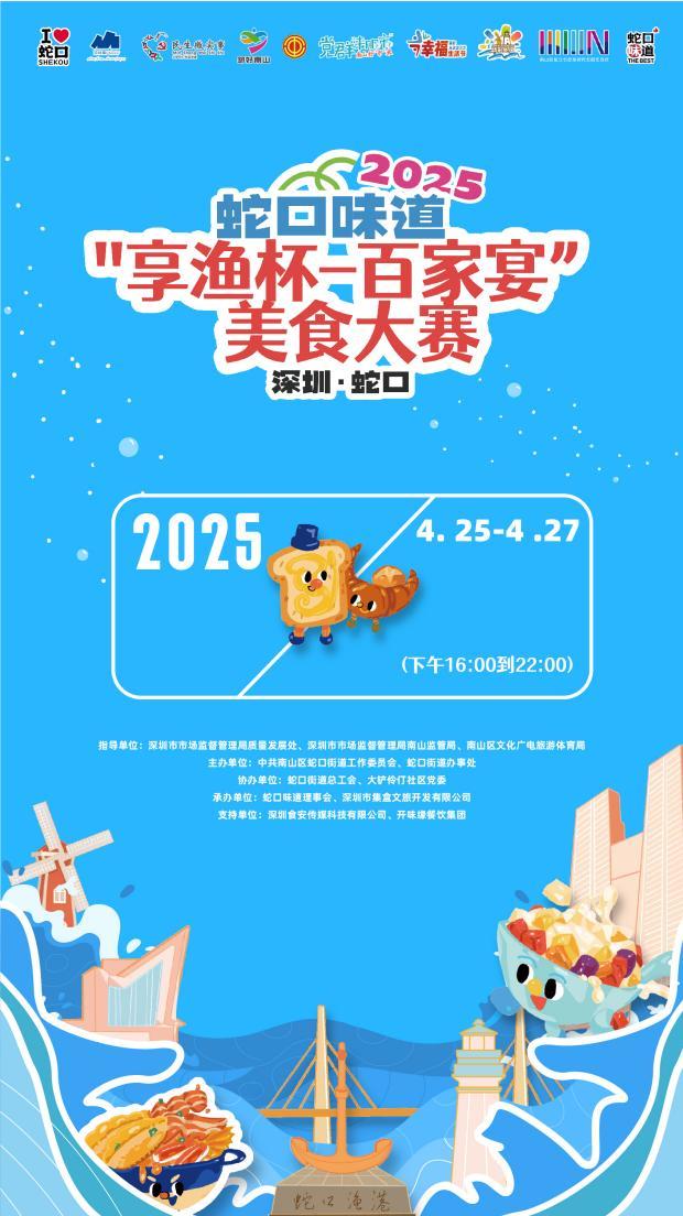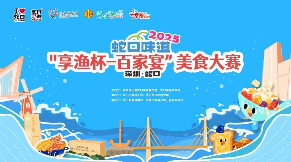 为响应深圳市“质量强市”战略与“提振消费、扩大内需”决策部署,由深圳市市场监督管理局质量发展处、南山监管局和南山区文化广电旅游体育局指导,蛇口街道主办的“享渔杯——百家宴”美食大赛及“蛇口味道72H快闪市集”将于4月25日在蛇口影剧院广场正式拉开帷幕。活动以美食竞技、文化体验、公益互动等形式,全方位展示蛇口“品质+文化”的消费新名片,助力深圳建设国际消费中心城市。