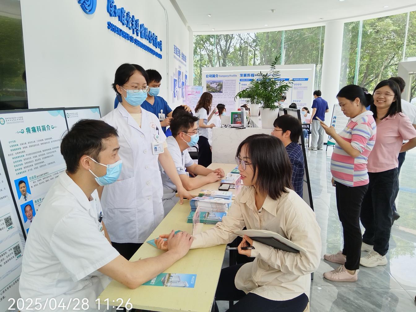 活动现场,由区八院组成的医疗团队为深圳深爱半导体股份有限公司的150余名劳动者提供血糖检测、中医理疗、肩颈按摩等医疗服务。现场工作人员通过展板讲解、手册发放等形式,强化企业员工防护意识,累计发放宣传资料500余份。