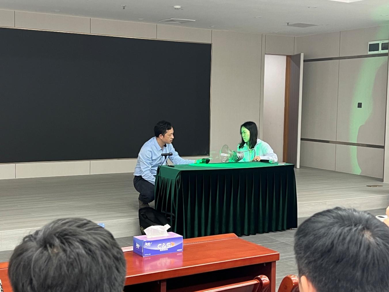 深圳深爱半导体股份有限公司职业卫生管理人员陈丹与深圳市比亚迪锂电池有限公司职业卫生管理人员崔国辉分别就集成电路行业、锂电池制造业的职业健康管理工作作专题报告。会后,参会者实地体验集集职业健康、安全生产、环保、消防宣教为一体的深爱半导体安“芯”实训基地,通过沉浸式体验提升企业健康管理能力。
