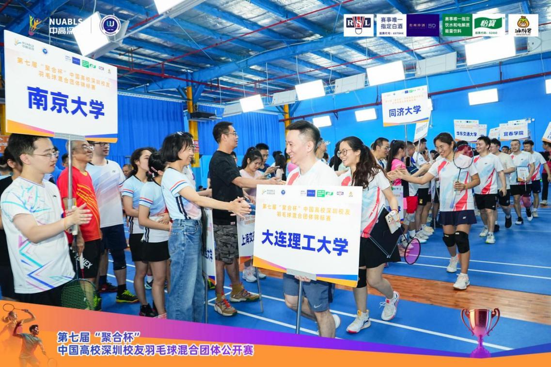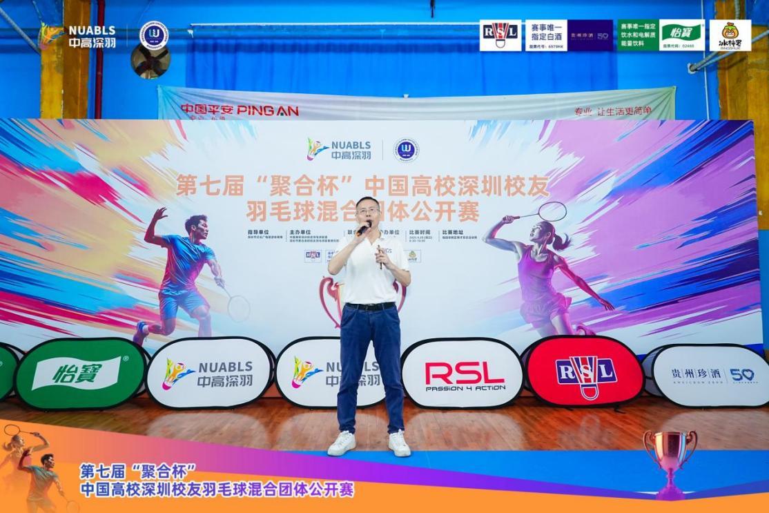 深圳市委党校行政处处长、一级调研员李蔚军,特区建工集团审计总监、深圳市羽毛球协会监事长张心亮,中国高校深圳校友羽毛球联盟理事长姜怀国等领导嘉宾出席开幕式并致辞。姜怀国表示,一年一度的“聚合杯”中国高校深圳校友羽毛球系列赛事在展现校友团结拼搏、积极向上的精神风貌同时,已成为全国高校深圳校友体育交流的重要平台和高端社交平台。