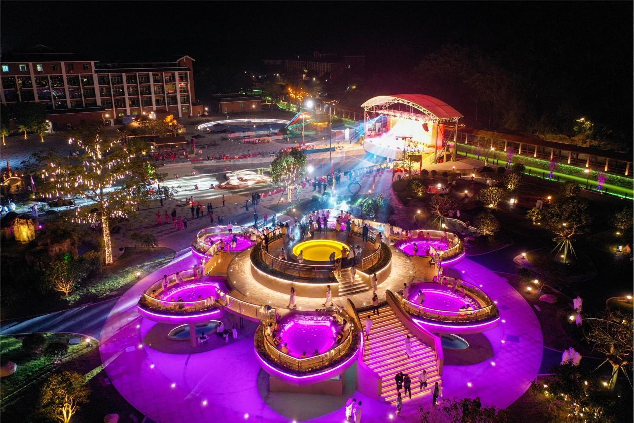 电音狂欢派对:夜晚的莲花温泉舞台化身欢乐海洋,专业DJ与乐队带来活力四射的演出,游客随音乐舞动,参与互动游戏,点燃假日激情。