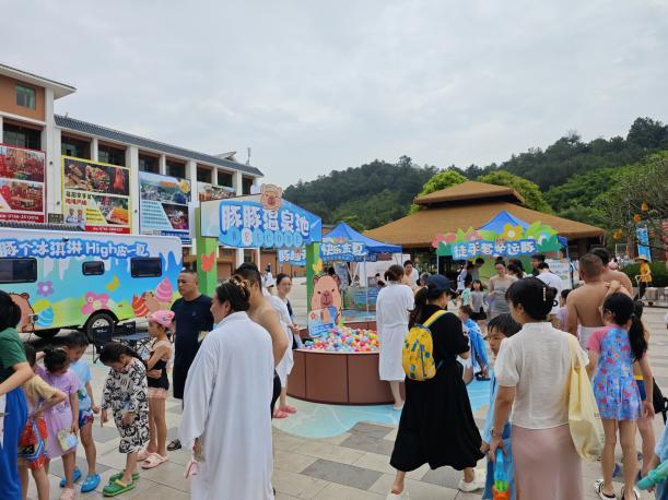 亲水畅玩体验:景区开放巨型滑梯池、冲浪池、瀑布温泉池等玩水项目,800多平方米户外泳池大受欢迎,游客在清凉水世界中尽情释放夏日活力。