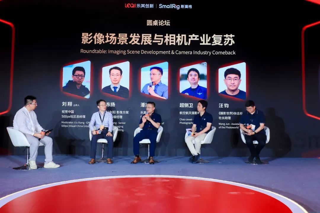 本次圆桌论坛由视觉中国500px社区总经理刘翔主持,邀请索尼(中国)影像方案市场部高级经理刘东扬、乐其创新SmallRig CTO潘志强、航空摄影师超侧卫、《摄影世界》杂志社社长助理汪钧四位嘉宾共话行业前沿。
