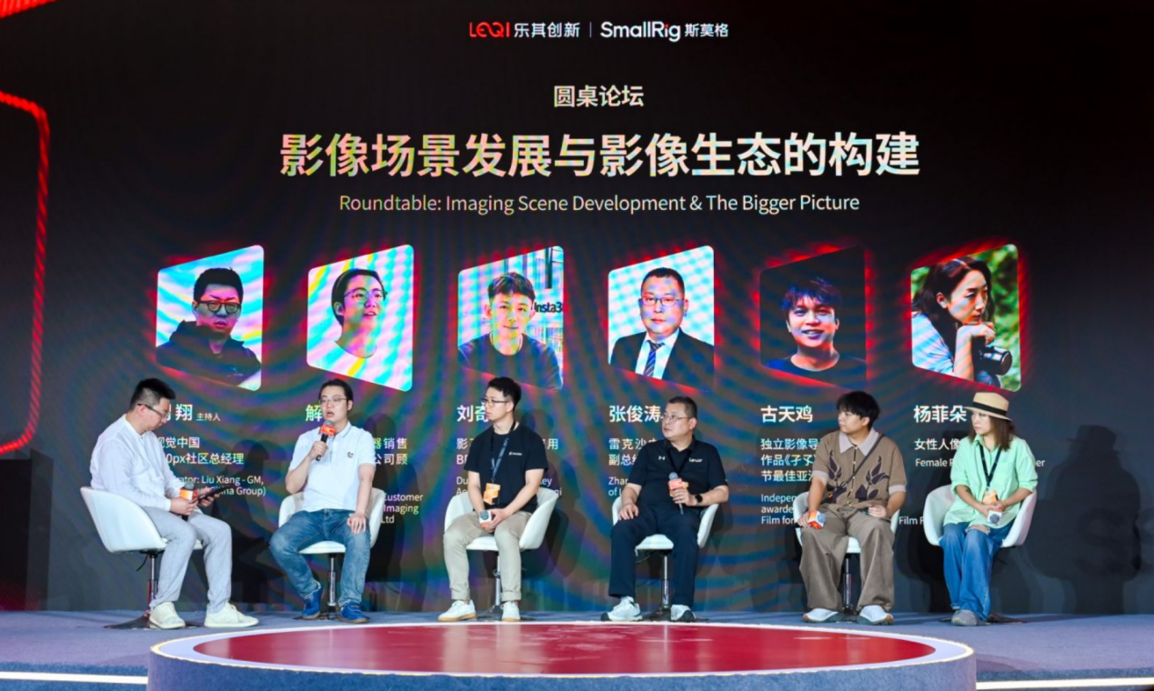 5月23日,深圳华侨城OCAT当代艺术中心内,开展了一场关于未来影像生态构建的全球对话。作为“2025国际影像文化周”的核心板块,2025SmallRig全球影像场景产业论坛“影像场景的发展与影像生态的构建”圆桌,汇聚了尼康、影石创新、雷克沙等硬件巨头、独立导演古天鸡、人像摄影师杨菲朵等创作力量以及视觉中国500px社区总经理刘翔作为主持人,共同探讨科技时代影像行业场景化发展和场景化生态构建的新蓝图。