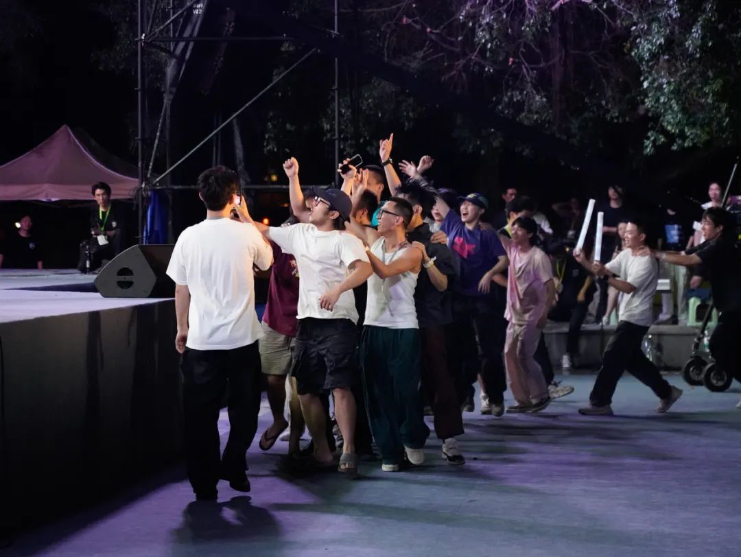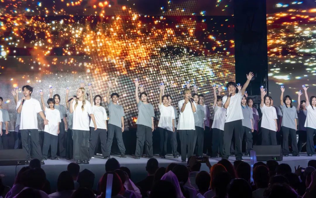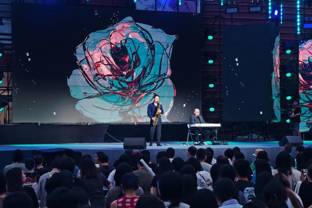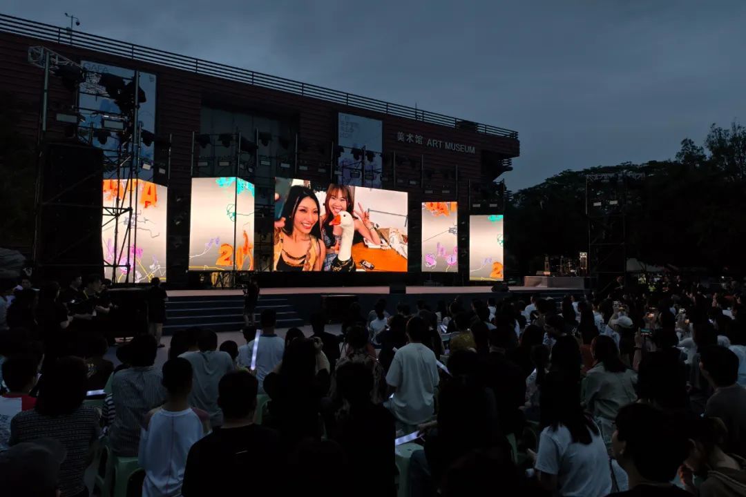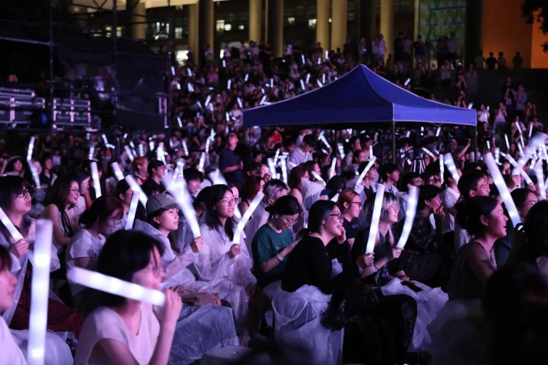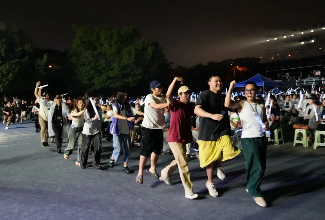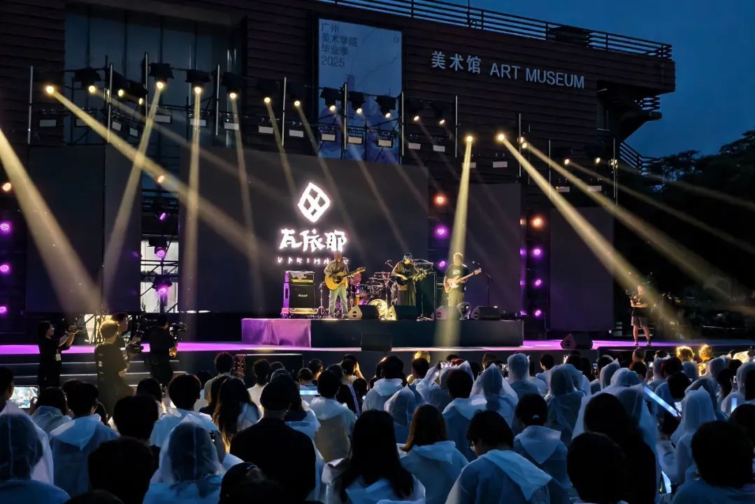 “GAFA·加法”青年艺术市集预热,萨克斯表演拉开多彩夏夜序曲,瓦依那乐队带来丰富质朴的泥土之声,二高与广美舞蹈队共创实验舞蹈,干花乐队讲述无定式的成长之旅……5月18日晚,“听,青年的声音——广州美术学院2025年毕业季”以一场多元跨界的艺术展演正式拉开帷幕,学校领导、老师,社会各界嘉宾和广美2025届本科生、研究生两千多人汇聚在大学城校区江畔广场。广东电视台、凤凰网、抖音等平台同步进行了直播,共计超过60万观众线上观演。