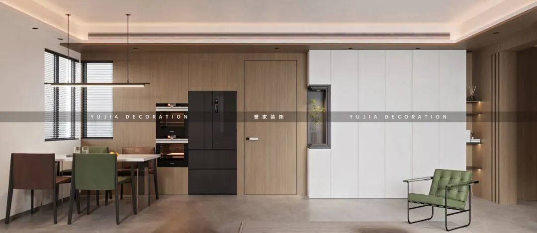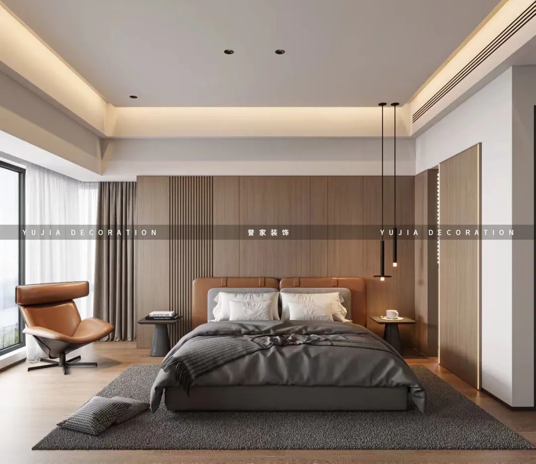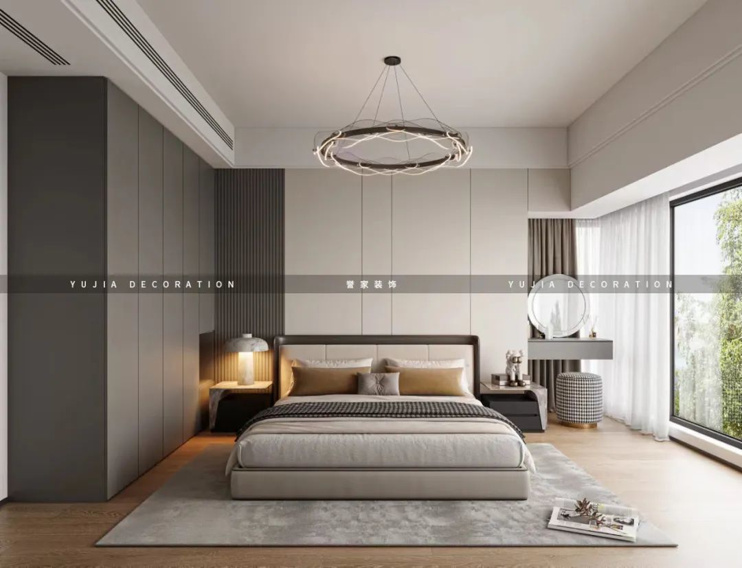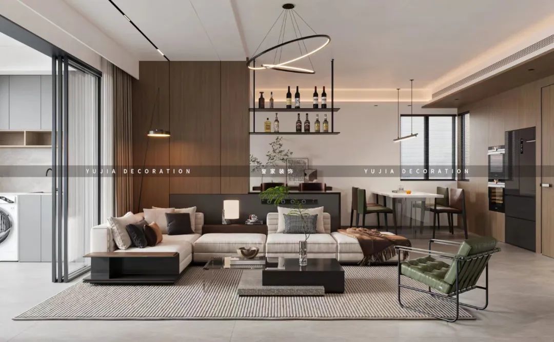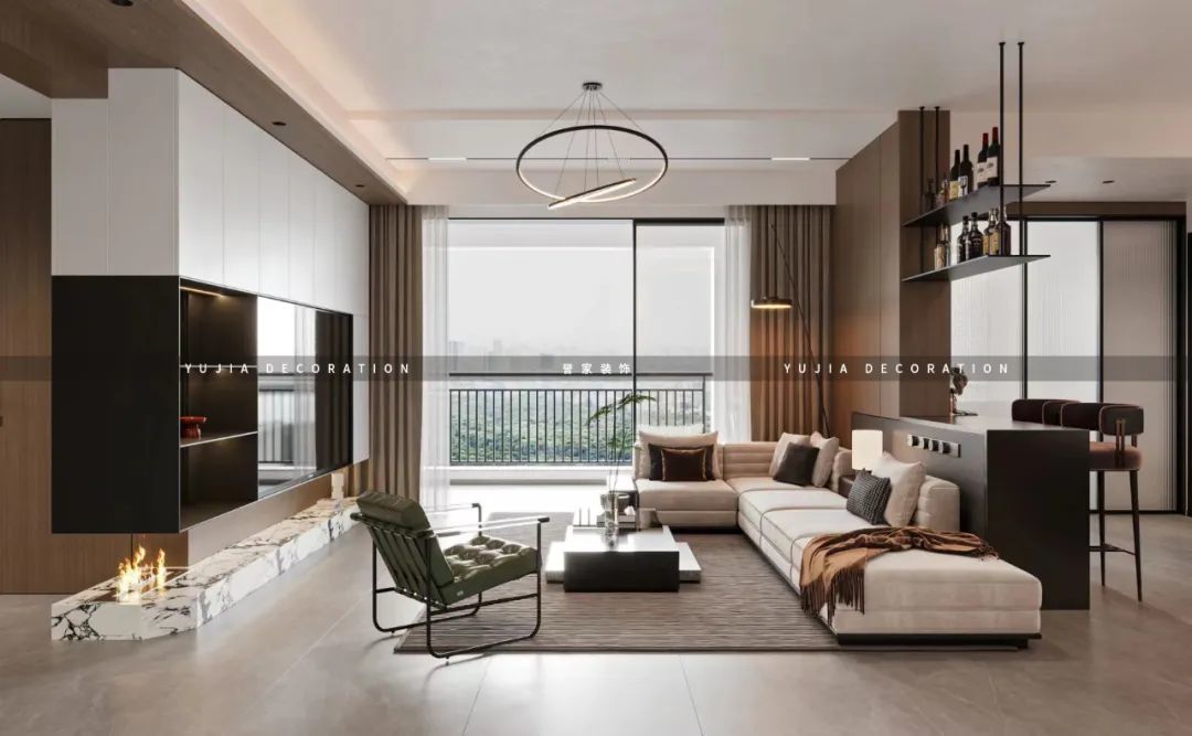 色彩体系以黑、白、灰、米等中性色调为基调,通过不同材质的明度与质感差异构建视觉层次,避免色彩冗余,营造简洁大气的空间氛围,为艺术装饰预留呼吸感。