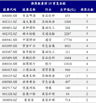 小商品城(600415)、瑞普生物(300119)、赤峰黄金(600988)、恺英网络(002517)等位居其次,均被推荐了4次。登康口腔(001328)和爱美容(300896)则均被推荐了2次。