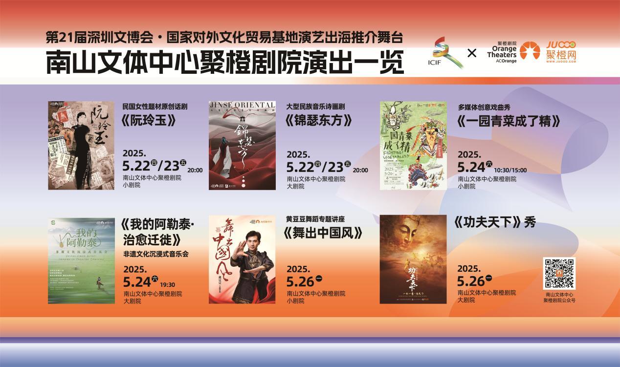 聚橙剧院院线作为“国家对外文化贸易基地演艺出海推介舞台”运营单位,更有效发挥剧院院线运营优势,创新设置“会场专业推介+剧院实景展演”的双轨模式,在深圳南山文体中心聚橙剧院与妇儿剧场排列演出了大型民族音乐诗画剧《锦瑟东方》、民国女性题材原创话剧《阮玲玉》、非遗文化沉浸式音乐会《我的阿勒泰·治愈迁徙》、多媒体创意戏曲秀《一园青菜成了精》(河北梆子版)、《舞出中国风》黄豆豆专题讲座、功夫舞台剧《功夫天下》秀、创意非遗偶剧《宝儿》等演艺项目。此举既助推文博会专业参展群体与剧院大众观演间形成有效导流,实现了资源高效转化与产业深度互动;亦有助于演艺团体机构、演艺创作者、演艺采购商等多方代表就演艺项目出海合作开展深度洽谈,打通从演艺展示到商业落地的关键环节。