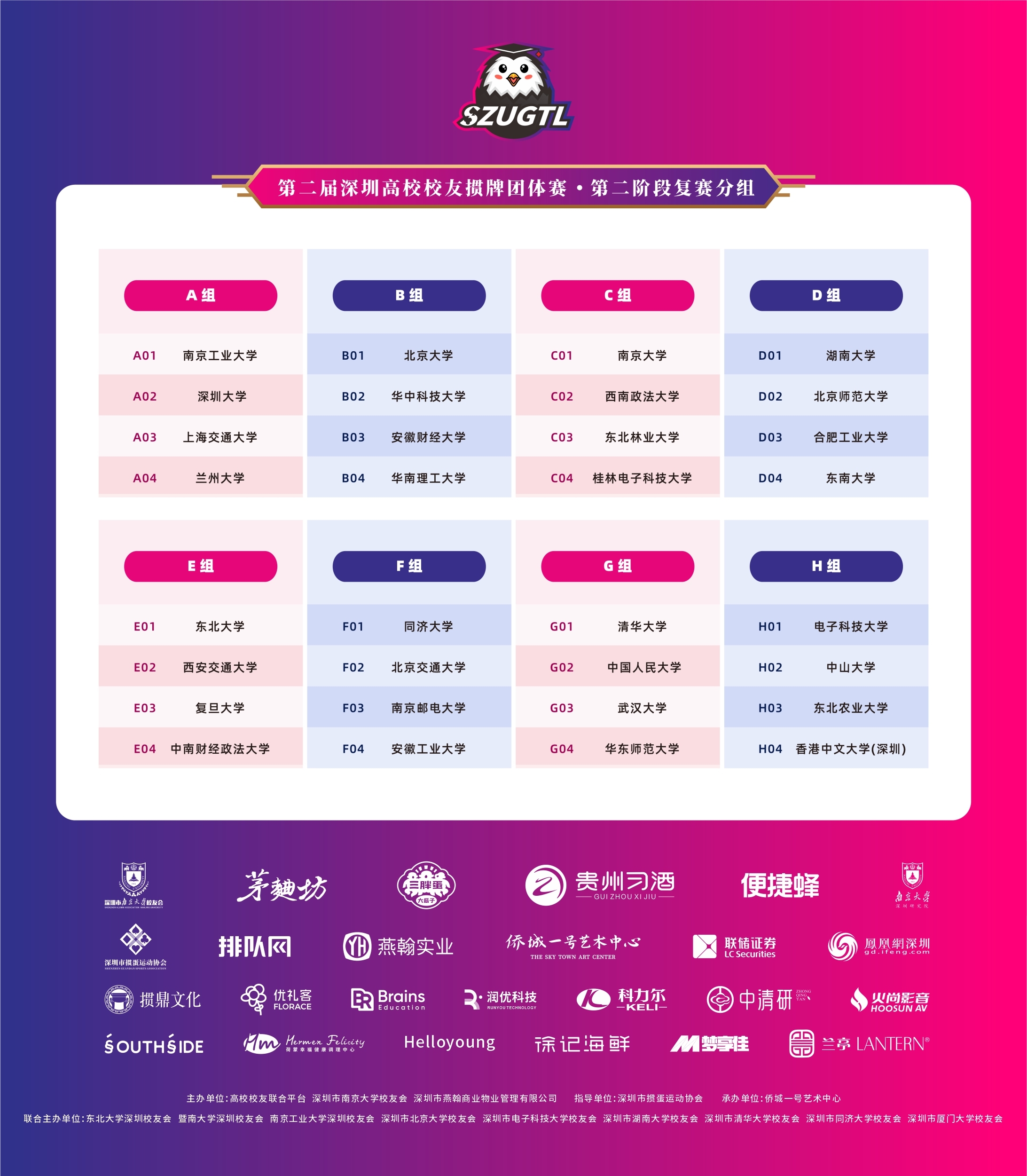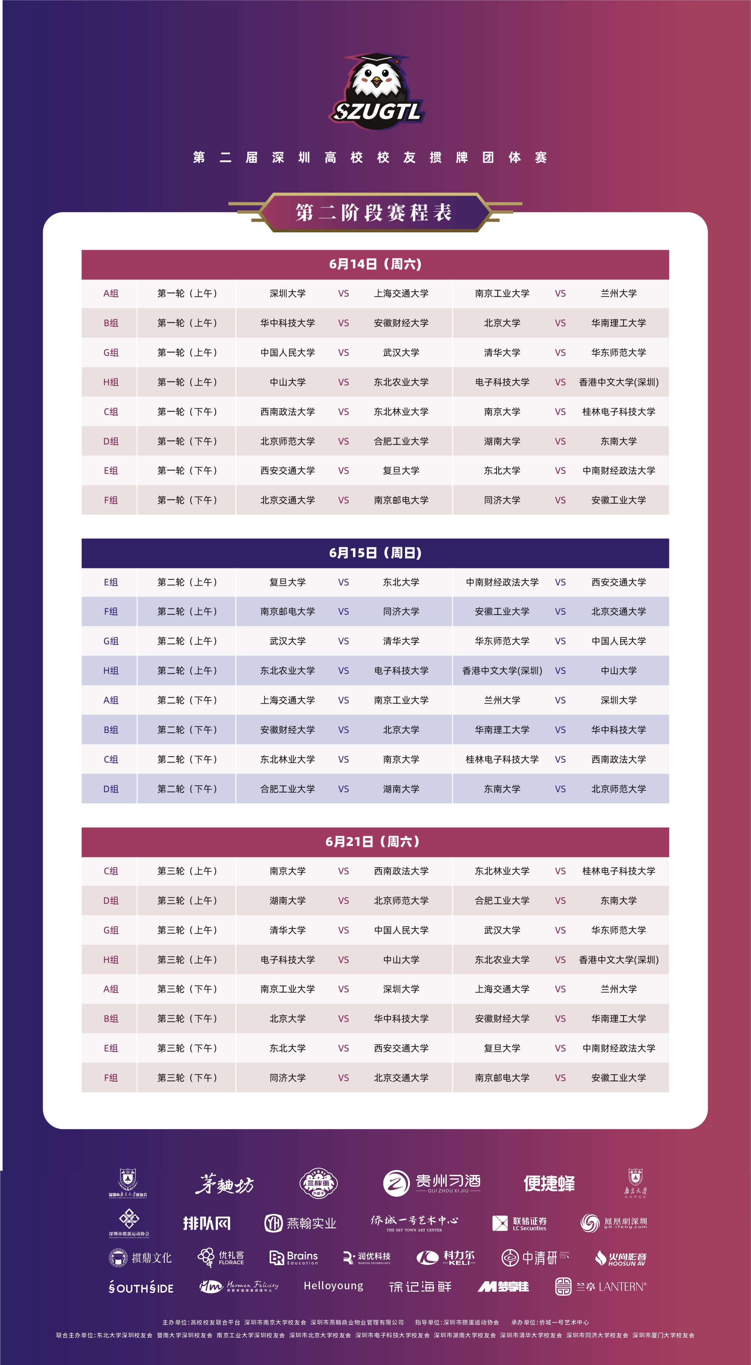 6月10日,第二届深圳高校校友掼牌团体赛·第二阶段复赛分组名单正式揭晓!